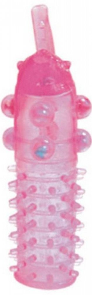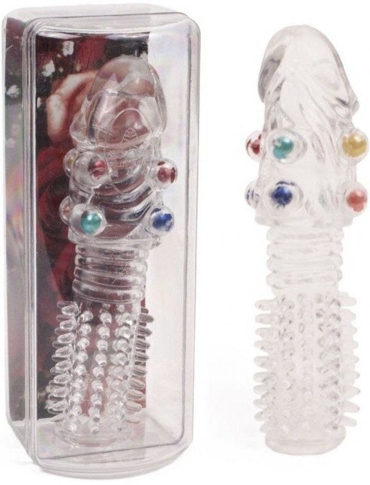 14 cm dlouhý transparentní návlek na penis nebo vibrátor s měkkými bodlinami vespod a zvrásněním a zalitými kuličkami nahoře pro extra potěšení. Elastický, prodlouží Váš penis o 1,5 cm. Velikost 14x3 cm, otvor 1,8 cm, šířka stěny 2-5 mm. Materiál TPE.