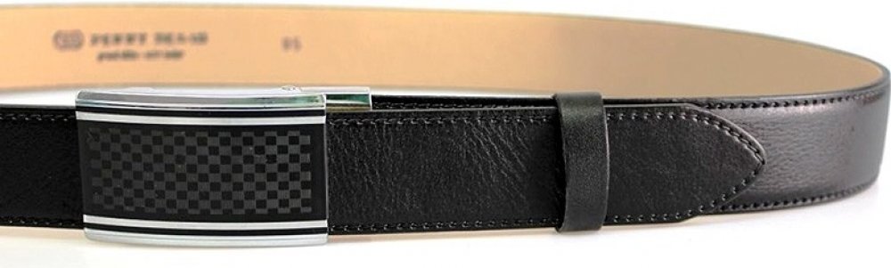 Luxusní černý pánský kožený opasek o šířce 35 mm má zajímavě řešenou plnou sponu s povrchovou úpravou NKS (nikl satinato). Tento opasek nemá dírky - spona AUTOMAT se zapíná speciálním mechanismem. Pásek je vyrobený z kvalitní italské úsně v černé barvě, podlepené světle béžovou kůží. Opasek je vhodný na nošení při společenských událostech. Pásek má lakované hrany i rub opasku, což zaručuje, že ned...