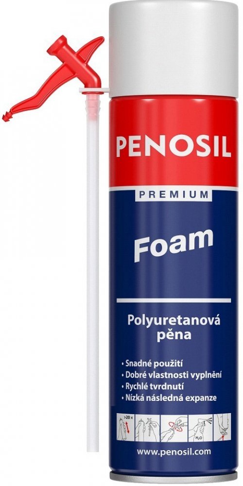 Nevytvrzenou pěnu lze z nářadí a povrchů vyčistit pomocí čističe PENOSIL Premium.