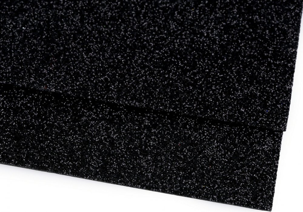 Pěnová guma Moosgummi s glitry černá 20x30 cm - 2ks