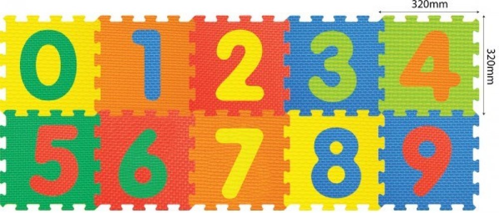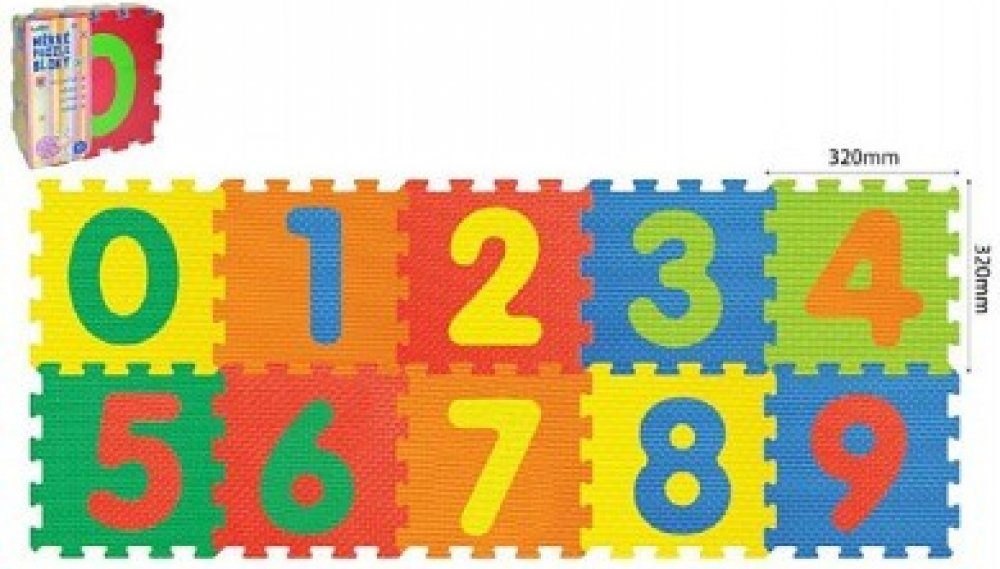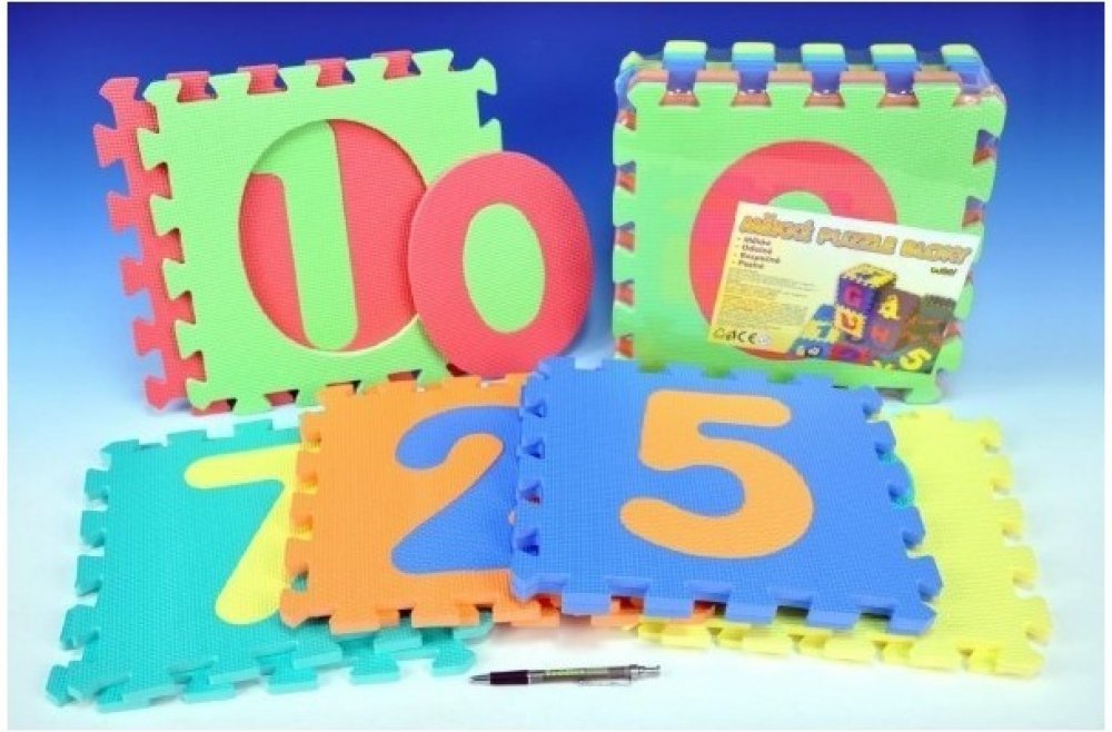 Pěnové puzzle Číslice 32x32x1cm 10ks v sáčku 10m+ - Pěnová podložka rozvíjí senzomotorické schopnosti, myšlení, kreativitu a soustředěnost. 10 dílů s číslicemi je vyrobeno z bezpečného materiálu, který je měkký, omyvatelný, lehký, odolný a zároveň skvěle izoluje a tlumí hluk.