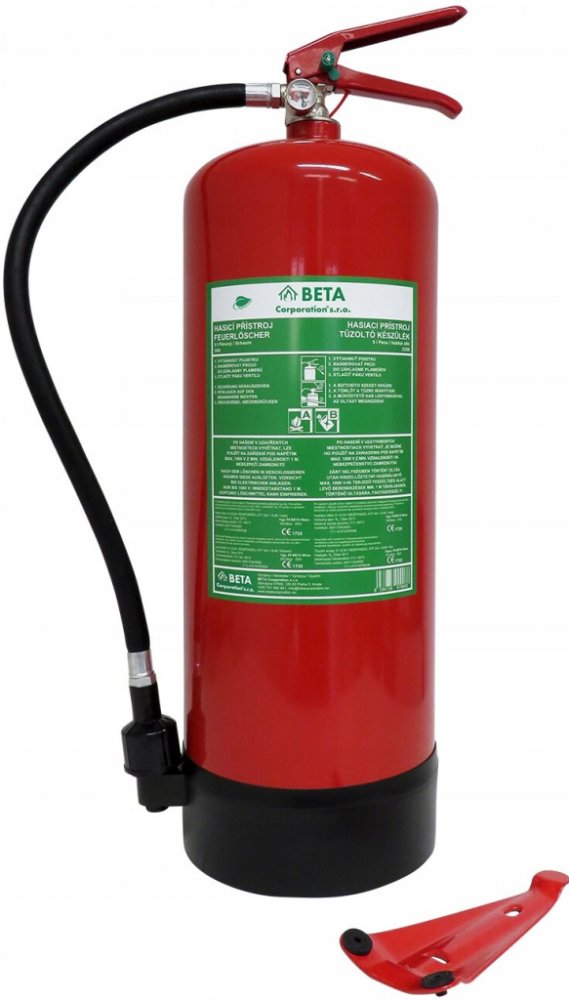 Pěnový hasicí přístroj F9 BETA Weco - 9L bez fluoru AB F9 BETA Weco je pěnový hasicí přístroj s ratingem 34A / 233B objemem hasiva 9 litrů. Tento hasicí přístroj se používá především ve vnitřních provozech, jako jsou sklady a komerční prostory. Pěnový hasicí přístroj F9 BETA Weco je naplněný vodou a bezfluorovým hasivem (3% hasební směs pro krizové aplikace, a to pro hašení tříd A – pevných látek, B – kapalných látek. Jedná se o hasicí přístroj pěnový bez obsahu fluoru, tudíž je šetrný k životnímu prostředí. Tlak hasicího přístroje je viditelný na manometru, instalovaném na ventilu. Lze jej použít i k hašení elektrických zařízení pod napětím do 1000 V z minimální vzdálenosti 1 m. Přístroj je pod stálým tlakem, po použití je znovu naplnitelný. Dodáván je včetně standardního držáku na stěnu a plastového podstavce. Vhodnost použití: pevné látky, hořlavé kapaliny. Hasicí přístroj F9 BETA Weco lze použít na hašení např. dřevo, papír, ropné produkty. Kde použijete tento hasicí přístroj? soukromé oblasti veřejné prostranství kancelářské prostory laboratoře zemědělství hotely Jaké třídy požáru uhasí? Výrobek lze použít k hašení tříd A, B a pro hašení elektrických zařízení pod napětím do 1000 V z minimální vzdálenosti 1m. A - Pevné látky (např. dřevo, papír, uhlí, plast, odpadky, textil atd.) B - Kapaliny (např. pohonné hmoty, lepidla, laky, alkohol, rozpouštědla) Co je součástí produktu? Držák Typový štítek s návodem k použití