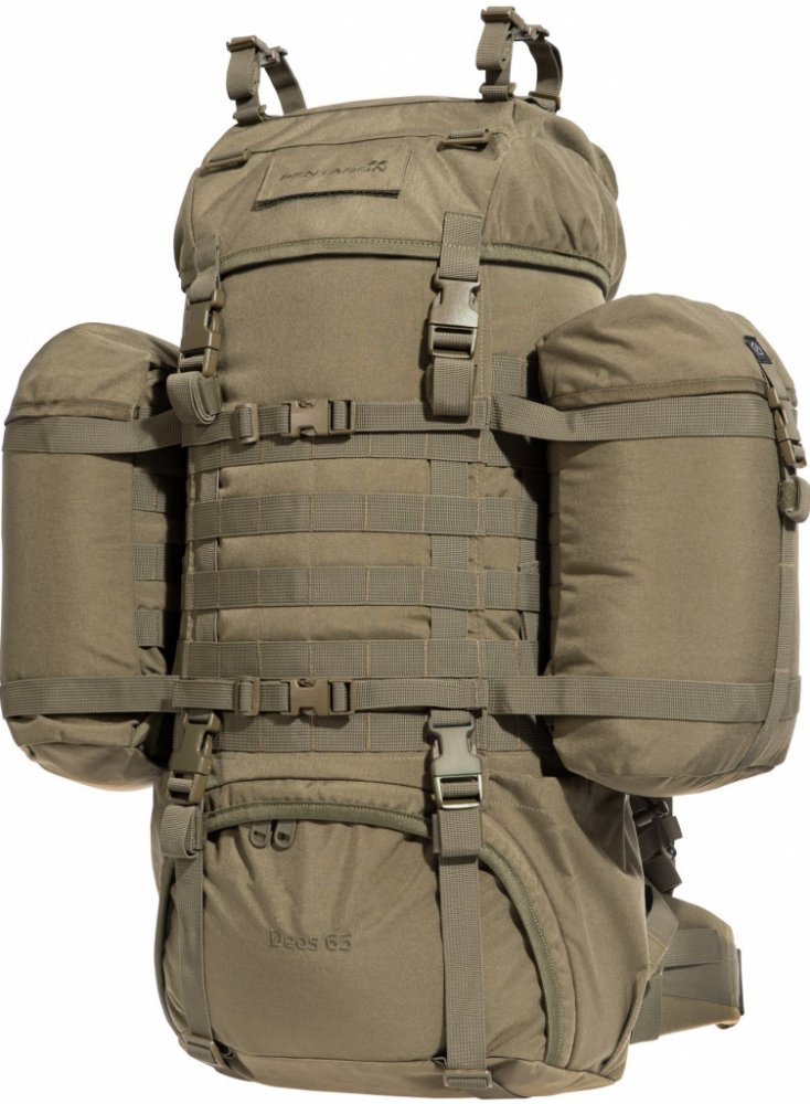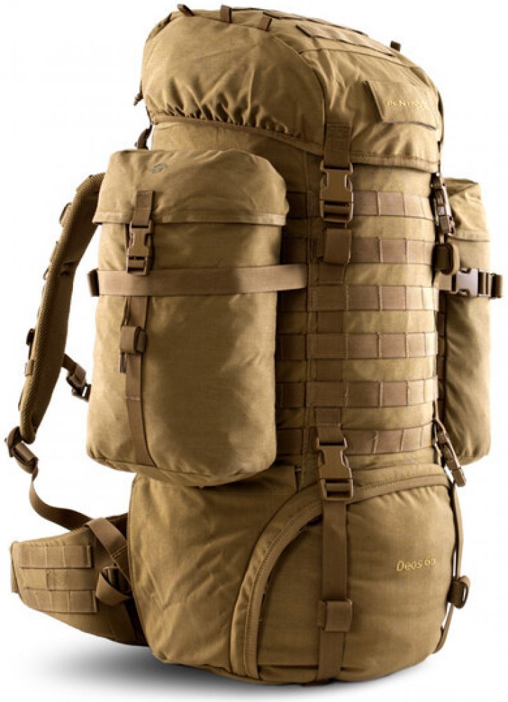 Dvoukomorový batoh DEOS od řeckého výrobce PENTAGON TACTICAL. Tento batoh nabízí objem 65 litrů, odepínatelné boční kapsy a množství MOLLE/PALS vazby, na kterou budete moci zavěsit dodatečné vybavení.