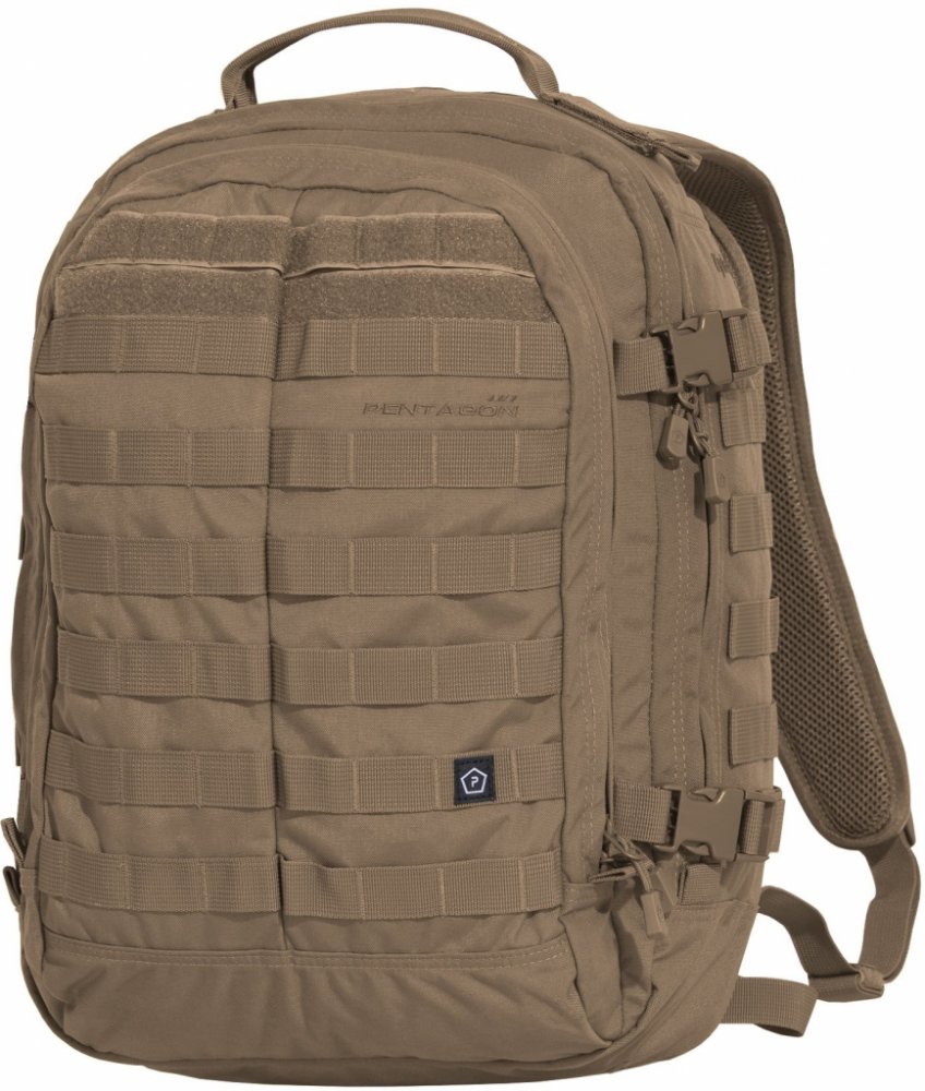 Batoh PENTAGON® KYLER BACKPACK lze použít pro veškeré vaše aktivity.Na přední straně a bocích batohu je MOLLE vazba pro uchycení dalšího vybavení. Po stranách batohu jsou nastavitelné stahovací pásky se sponou. Přední komora batohu se zipem s pořadačem a síťovanou kapsou. Hlavní komora se síťovanou kapsou. Za touto komorou je ještě kapsa se zipem pro hydratační vak. Polstrované a nastavitelné ramenní popruhy s hrudním a bederním popruhem. Na horní straně batohu ucho pro přenášení v ruce. Na zadní straně batohu se síťované polstrování. Materiál: 500D, 420HD nylon, rozměry: 40 x 22 x 34cm, objem: 36L.