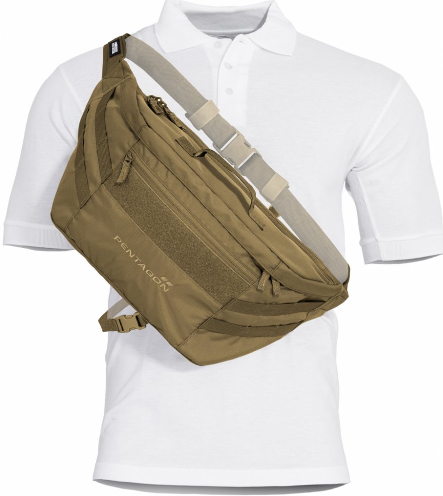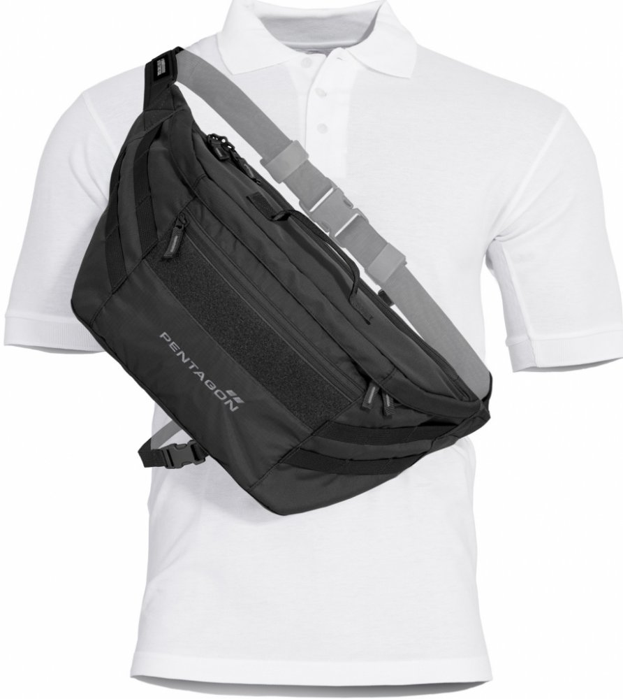 - YKK® zipy - vazba MOLLE/PALS - přední VELCRO panel - plochá přední kapsa - hlavní prostor se dvěma vnitřními kapsami - další široká kapsa pokryta měkkým flaušem - zadní skrytá kapsu na cennosti Materiál: 600D polyester, 420D nylon rip-stop Rozměry cca: 41 x 20 x 8,5 cm Objem cca: 8,5 L