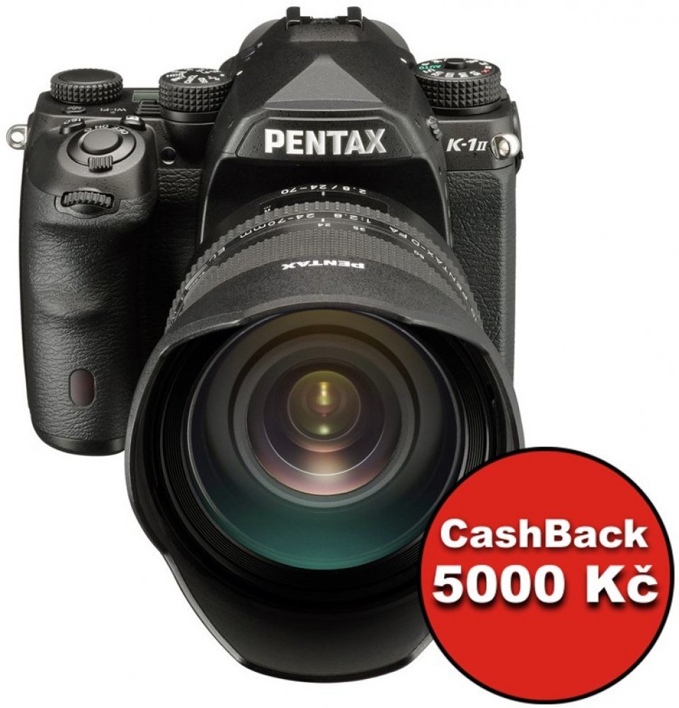 Pentax K-1 Mark II - Fullframe zrcadlovka se senzorem CMOS 36,4 mpx, nový obrazový procesor PRIME IV. Zaostřovací senzor SAFOX 12 se 33 body pro ostření. Díky novému procesoru se navýšilo i maximální ISO na 819200. Seriové snímání 4,4 snímky za vteřinu. Tělo je utěsněné proti vlhkosti a prachu, a je vybavené i 5osou redukcí otřesů. Další vybavení: Wi-fi, GPS, Duální SD sloty na paměťové karty. Sou...