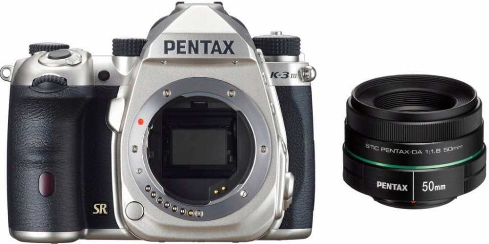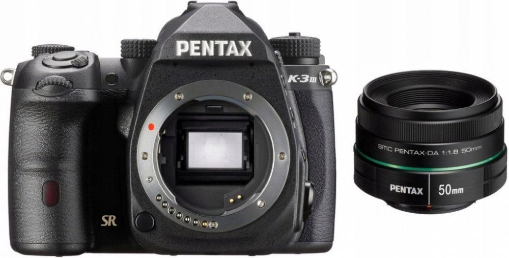 Fotoaparát Pentax K-3 III, nabíjecí lithium iontová baterie D-LI90, USB napájecí adaptér AC-U2, adaptér EU zásuvky AC-U1, USB kabel I-USB166, krytka hledáčku ME, popruh Pentax O-ST162, gumová očnice FU, kryt sáněk FK, krytka bajonetu KII, krytka synchronizačního kontaktu 2P (nasazená na těle), trojúhelníkové očka na popruh + ochranný kryt oček (nasazeno na těle), gumová ochrana kontaktů gripu (nasazeno na těle), Digital Camera Utility™ 5, český návod.