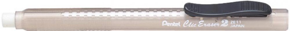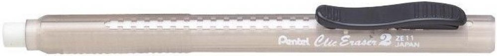 Publikace: Pryž v tužce Pentel Clic Eraser - černá - neuveden. • vysouvací pryž • plastové těl • praktické provedení • pohodlné držení • náhradní pryž ZER-2 • černá barva těla s plastovým klipem Vysouvací pryž v praktickém plastovém těle. Polymerová pryž bílé barvy. Plastový klip opatřen brzdou, která brání vysunutí pryže do délky, kdy by se zlomila. Pryž lze doplnit náhradní náplní ZER- 2. Pohodlné držení a gumování díky provedení ve formě pera. Publikace: Pryž v tužce Pentel Clic Eraser - černá - neuveden.