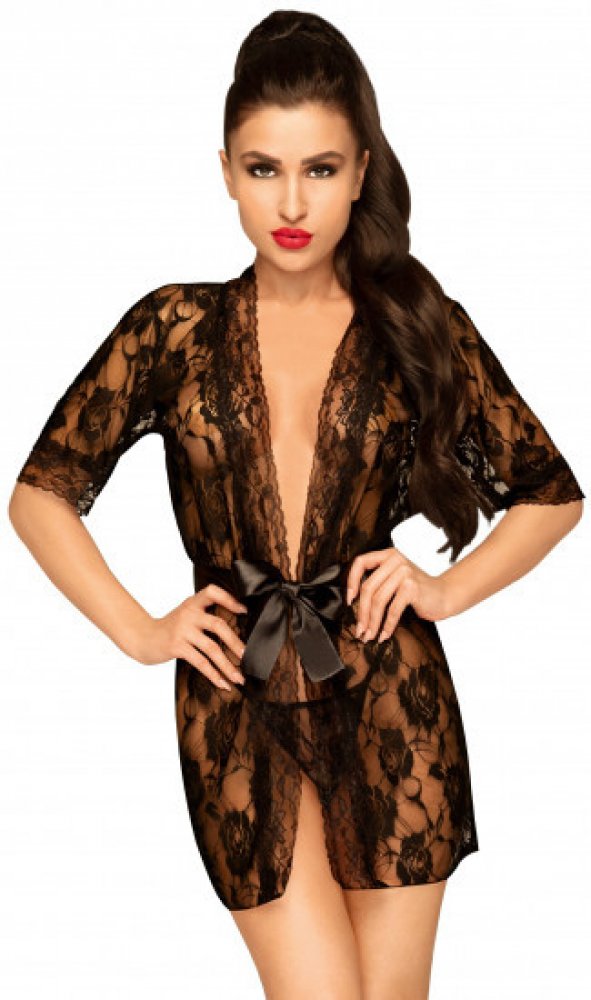 Penthouse Sweet Retreat - krajkový župan s tangy (černý)