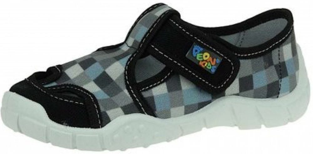 Dětské bačkory Peon MI/018 DK vyrobené z bavlněné tkaniny v klučičích barvách a kostičkovým motivem "Minecraft". Jsou vhodné na normálně široké nožky a díky suchému zipu se dají krásně přizpůsobit v oblasti nártu i kotníku. Podrážka je velmi dobře ohebná, neklouzavá, měkká a v přední části mírně zvýšená, chrání tak proti okopu. Dva velké otvory v přední části a průduchy v podešvi zajistí perfektní...