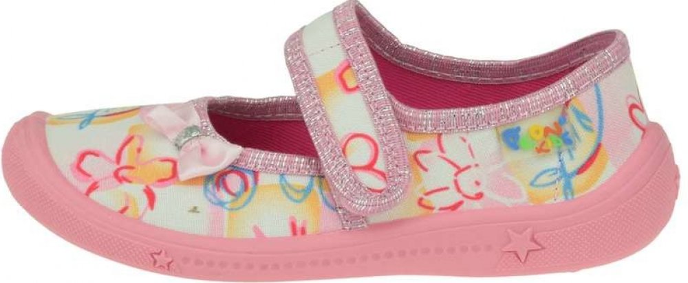 Dívčí papučky s jednoduchým upínacím páskem na suchý zip jsou ideální volbou jako školní přezůvka nebo domácí obuv, přezůvky se díky pásku snadno nazouvají. Podešev je odolná proti uklouznutí a díky drobným otvorům v podešvi a vyjímatelné kožené stélce jsou tyto botičky dobře prodyšné. Vyjímatelná kožená stélka s aktivním uhlím proti bakteriím a lehkou podporou podélné klenby zajistí hygienické a zdravé obutí.