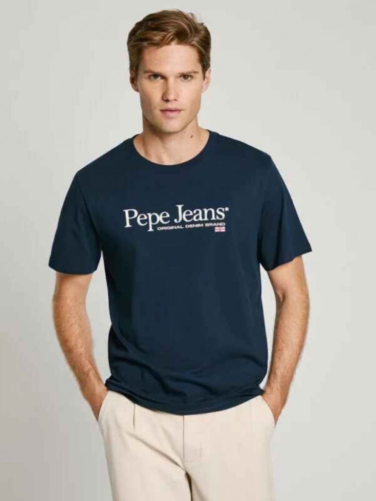 Pánské tmavě modré tričko Albert s potiskem od Pepe Jeans.Materiál:100% bavlnaStřih:Regular fit