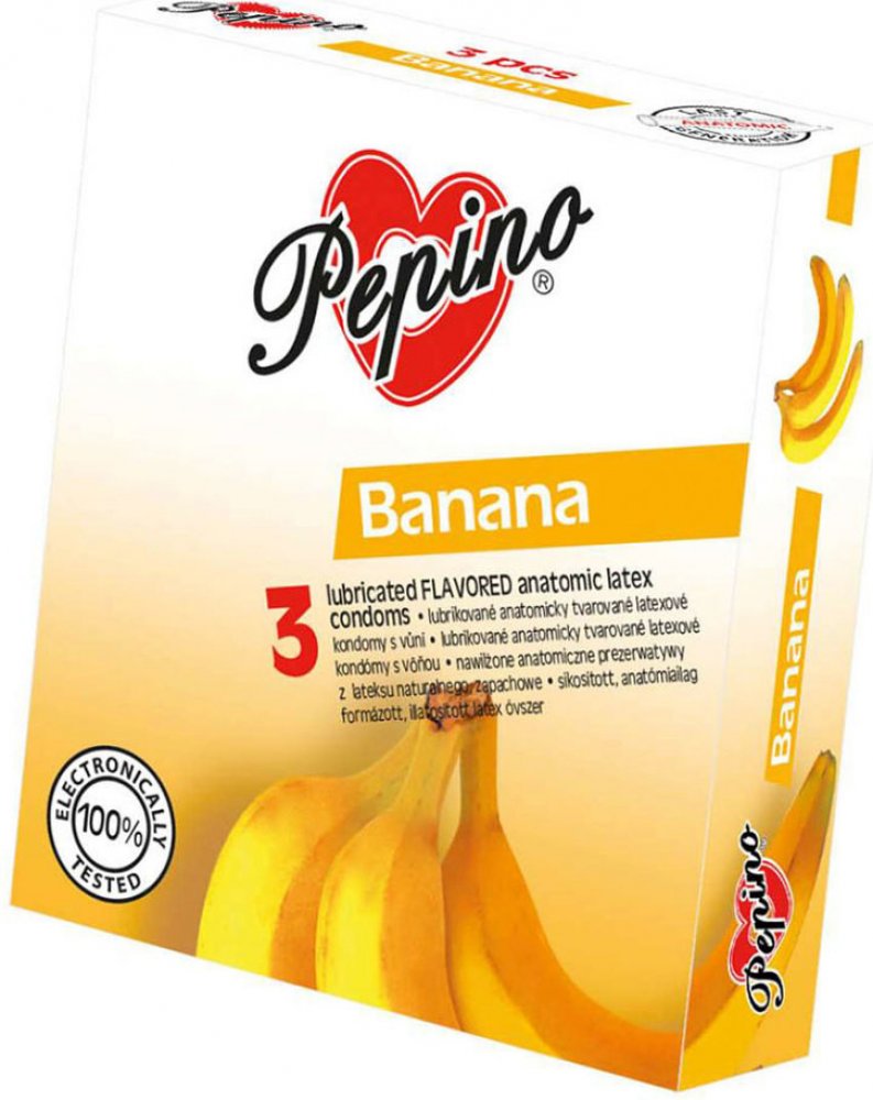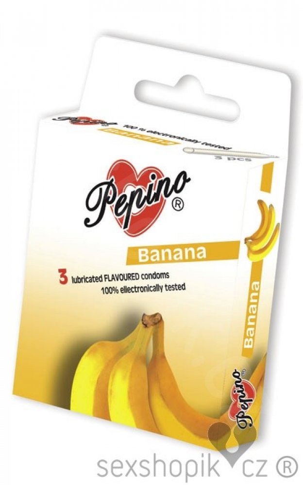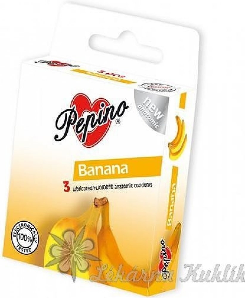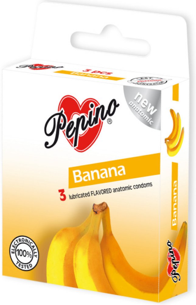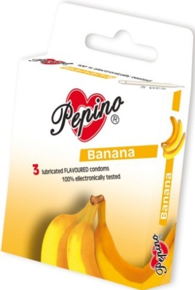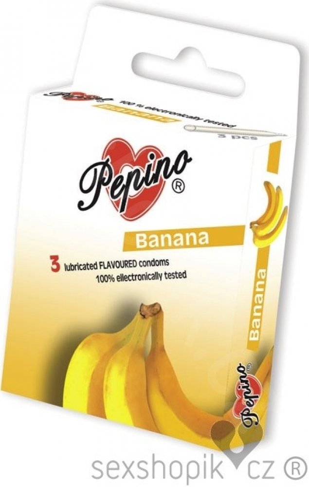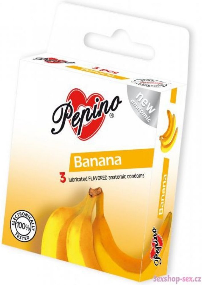 Pepino kondomy z přírodního latexu s banánovou vůní s rezervoárem. Šířka 53 mm. Vlhčeno silikonovým olejem. 100% elektronicky testováno. Skladujte na suchém a chladném místě. Pouze pro jedno použití. 3 kusy v krabičce. Žádná antikoncepční metoda nemůže zajistit 100% ochranu před otěhotněním, HIV nebo jinými sexuálně přenosnými chorobami. Osobám trpícím alergiemi na latex doporučujeme používat kondom pouze po konzultaci s lékařem. Nasazování kondomu Jak postupovat při výběru kondomu si můžete přečíst v rubrice Jak nakupovat, takže teď můžeme přistoupit k samotnému nasazování kondomu. Na rozcvičení si dáme malou srandičku a můžeme jít na to. Raději začneme pěkně od začátku aneb Těžko na cvičišti, lehko na bojišti Ačkoli si někteří možná budou ťukat na čelo, věřte, že výše uvedená moudrost platí v tomto případě stoprocentně, dokonce i když se oblékání zhostí partnerka. A pokud jste začátečník, stoupá platnost na 150% (omlouvám se matematikům, ale přehánění je obvyklá metoda lidových vypravěčů). Není totiž nic antierotičtějšího než ulámané nehty a porušená zubní sklovina, o nechtěném početí nemluvě. Zkuste si tedy cvičně rozdělat fólii a vyndat kondom, abyste vyloučil jakékoli nemilé překvapení a pokud budete s námi pokračovat v nácviku i dál, jen dobře. Kam s ním? Tentokrát nemáme na mysli slamník (nebo s čím to měl klasik problémy), ale sperma. Ve vypasovaném kondomu přece není volné místo (a pokud ano, zvolte menší velikost)! Naštěstí s tím výrobci počítají a dělají na konci kondomu tzv. rezervoir (to je ten zúžený výstupek na špičce prezervativu). Aby však dobře plnil své poslání, je třeba z něj před nasazením vytlačit vzduch. To se nejlíp realizuje tak, že kondom uchopíte právě za rezervoir. Hlavně si dejte pozor, abyste ho chytili ze správné strany, aby šel rolovat (rezervoir musí vystupovat zevnitř srolovaného kondomu)! Tento problém neřešíte, pokud používáte kondomy balené ve "vaničce" (SAGAMI, LOVE GAME,...). Tam je to jasné. U kondomů v klasické fólii musíte vyzkoušet. Až ke kořenům! Další důležitou zásadou při nasazování kondomu je vyrolovat ho až ke kořeni penisu. Minimaluzujete tím riziko sklouznutí ochrany při styku, což je věc vskutku nemilá. Žádné přesčasy! Jinými slovy: ustupte dříve, než ustoupí erekce. Z povadlého penisu totiž sklouzne kondom jedna báseň a ty následky...