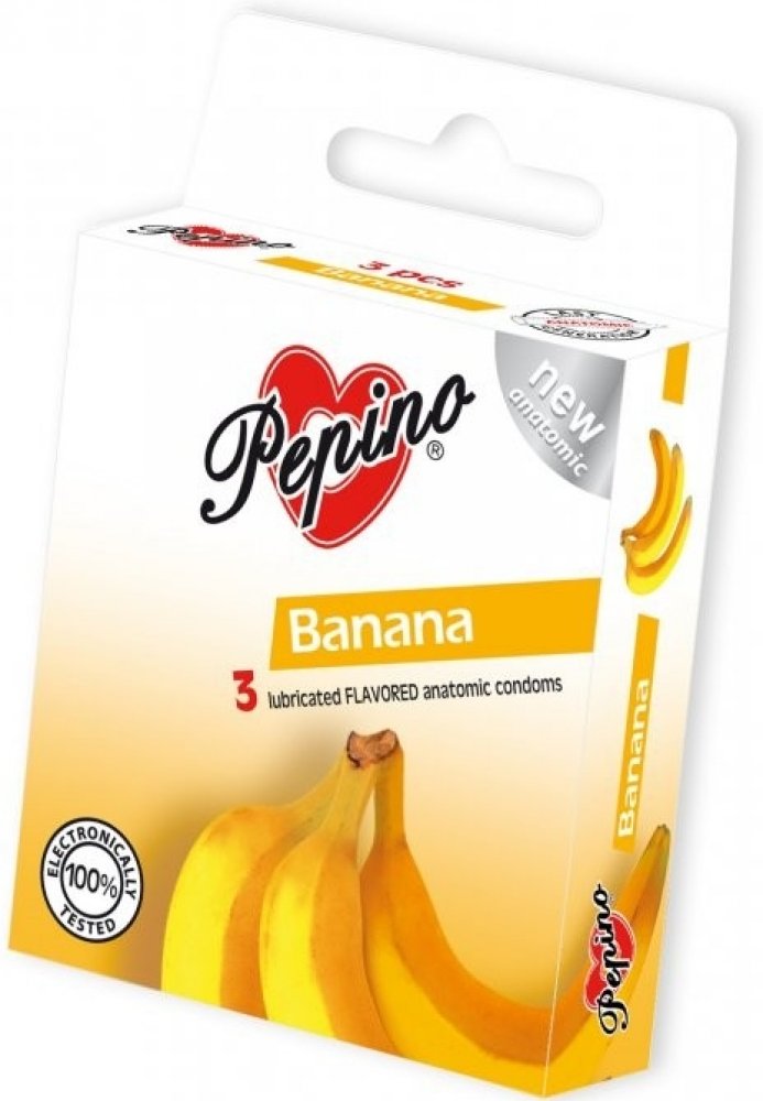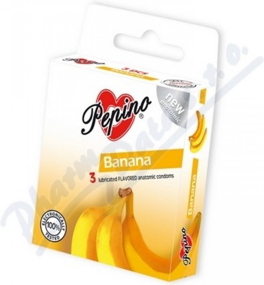 Pepino kondomy z přírodního latexu s banánovou vůní s rezervoárem. Šířka 53 mm. Vlhčeno silikonovým olejem. 100% elektronicky testováno. Skladujte na suchém a chladném místě. Pouze pro jedno použití. 3 kusy v krabičce. Žádná antikoncepční metoda nemůže zajistit 100% ochranu před otěhotněním, HIV nebo jinými sexuálně přenosnými chorobami. Osobám trpícím alergiemi na latex doporučujeme používat kond...