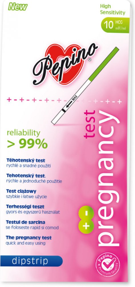 Citlivost tohoto testu je vysoká, to znamená, že proužkový těhotenský test Pepino Dipstrip může zjistit těhotenství ve velmi ranném stádiu - 2 dny od početí, zhruba 7 dnů před očekávanou menstruací.