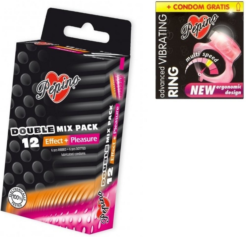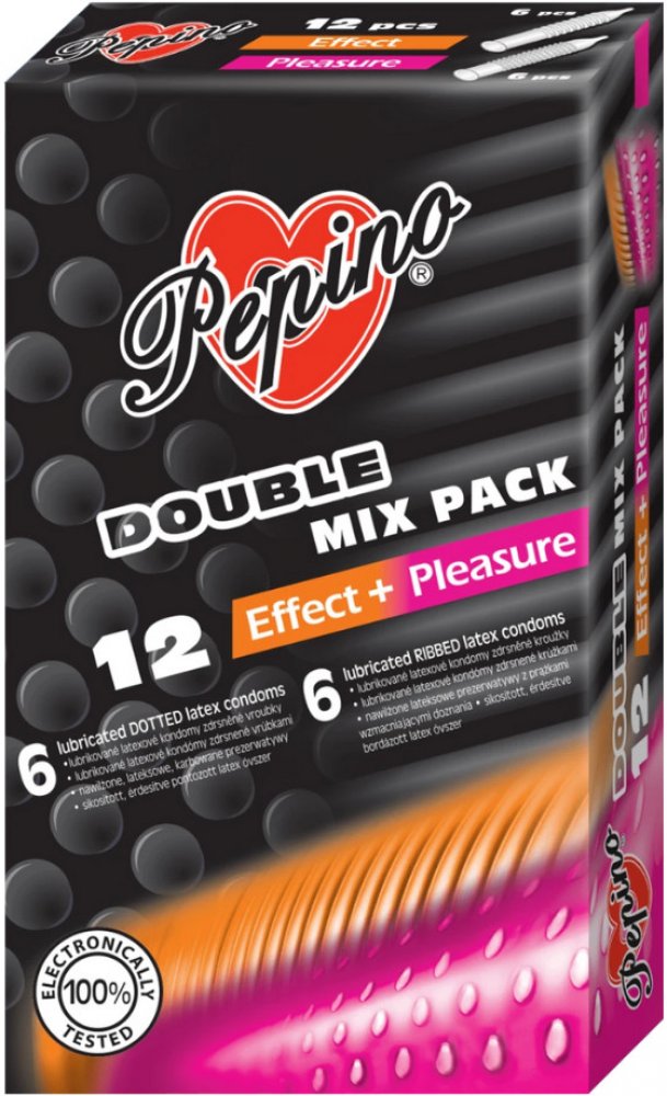 Velké dráždivé balení s 12 kusy v krabičce. PEPINO Pleasure kondomy z přírodního latexu, zdrsněné kroužky 6 ks a zdrsněné vroubky 6 ks. Natural colour, s rezervoárem, nominální šířka 52 mm. Vlhčeno silikonovým olejem. S jemnou vanilkovou vůní. 100% elektronicky testováno. Správné používání kondomů může pomoci snížit riziko otěhotnění, přenosu HIV / AIDS nebo jiných sexuálně přenosných infekcí. Kondomy Pepino jsou zdravotnické prostředky. Před použitím si pozorně přečtěte návod k použití uvnitř balení.