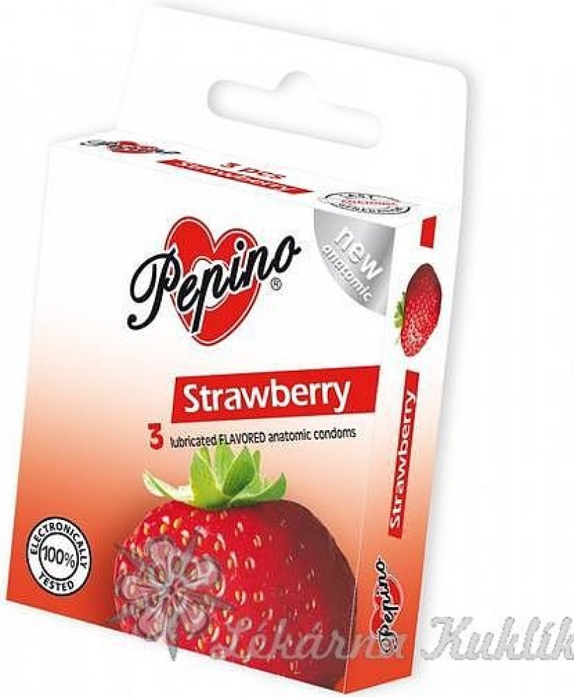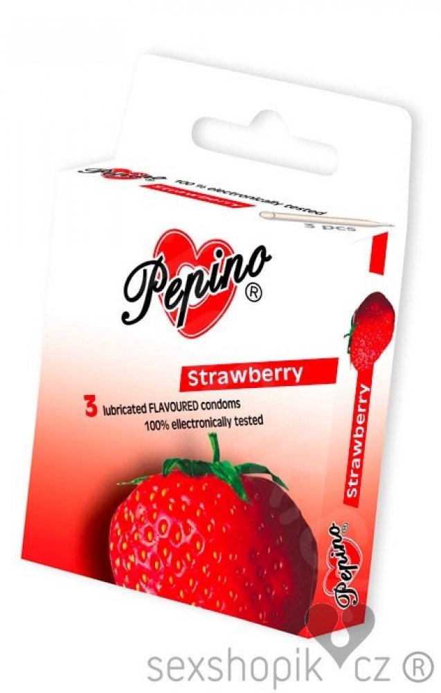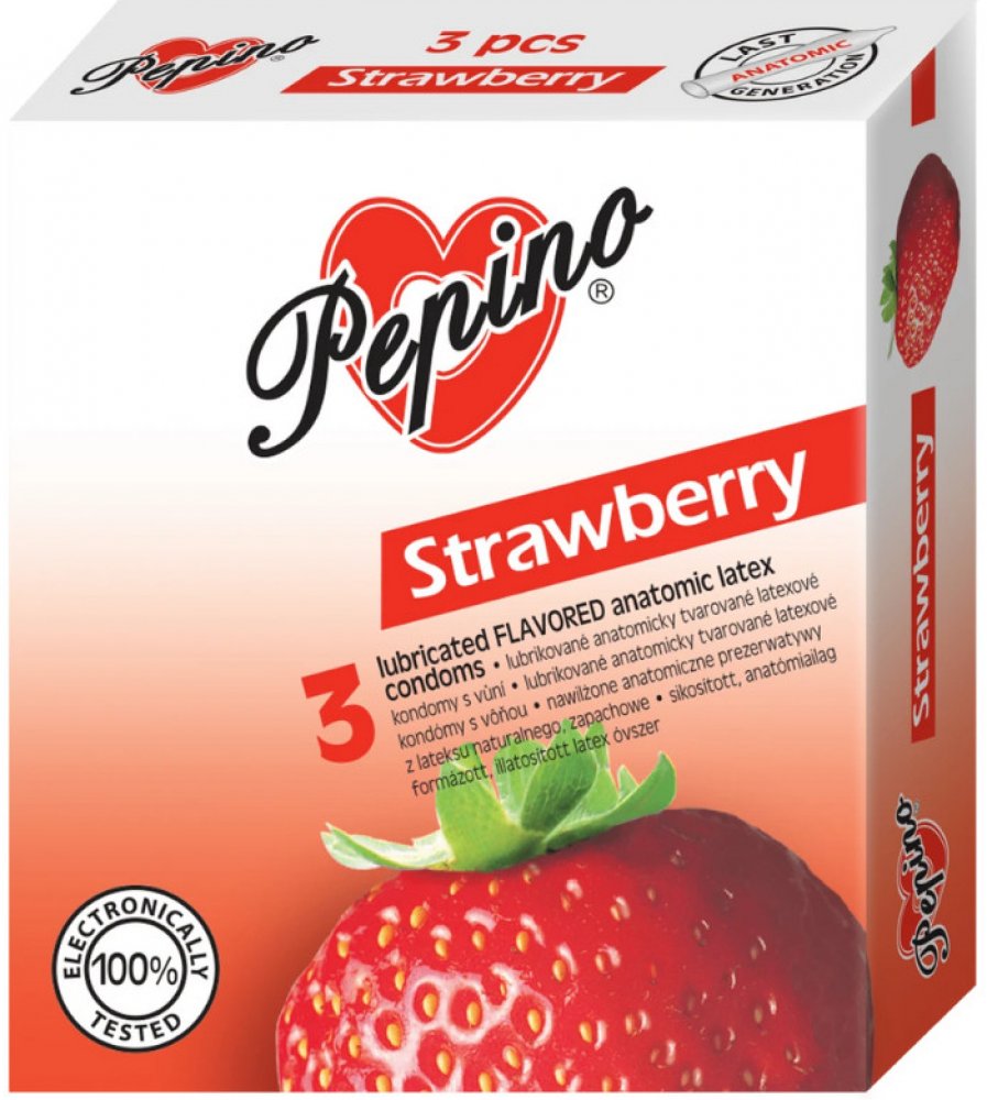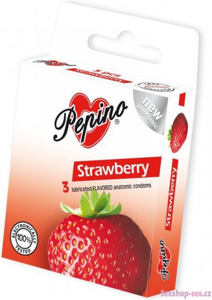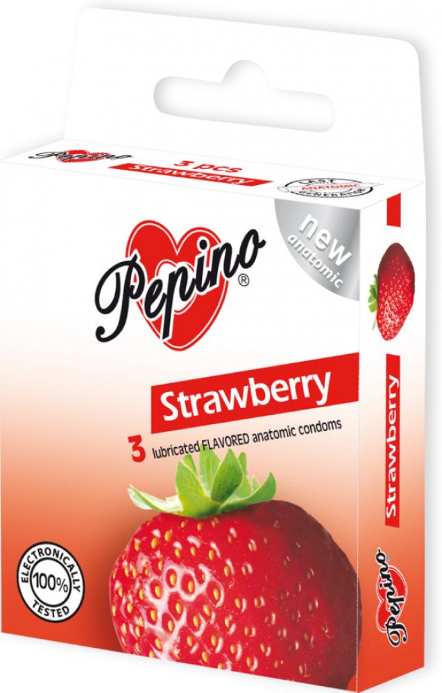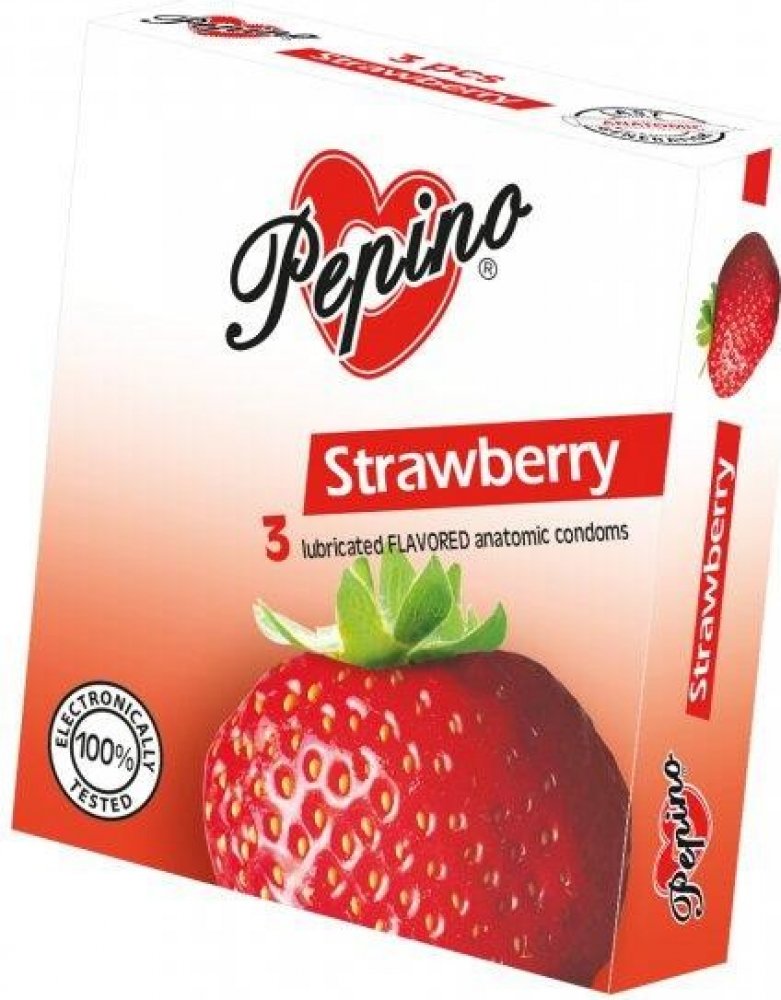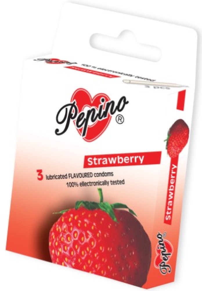 Pepino kondomy z přírodního latexu s jahodovou vůní s rezervoárem. Vůně čerstvě natrhaných jahod při sexu je tuze fajn věc. Pro všechny milovníky jahod a jejich příjemné chutě. Pánské kondomy zpřírodního latexu s jahodovou vůní