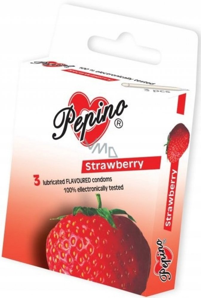 Pepino kondomy z přírodního latexu s jahodovou vůní s rezervoárem. Vůně čerstvě natrhaných jahod při sexu je tuze fajn věc. Pro všechny milovníky jahod a jejich příjemné chutě. Osobám trpícím alergiemi na latex doporučujeme používat kondom pouze po konzultaci s lékařem. Nasazování kondomu Jak postupovat při výběru kondomu si můžete přečíst v rubrice Jak nakupovat, takže teď můžeme přistoupit k samotnému nasazování kondomu. Na rozcvičení si dáme malou srandičku a můžeme jít na to. Raději začneme pěkně od začátku aneb Těžko na cvičišti, lehko na bojišti Ačkoli si někteří možná budou ťukat na čelo, věřte, že výše uvedená moudrost platí v tomto případě stoprocentně, dokonce i když se oblékání zhostí partnerka. A pokud jste začátečník, stoupá platnost na 150% (omlouvám se matematikům, ale přehánění je obvyklá metoda lidových vypravěčů). Není totiž nic antierotičtějšího než ulámané nehty a porušená zubní sklovina, o nechtěném početí nemluvě. Zkuste si tedy cvičně rozdělat fólii a vyndat kondom, abyste vyloučil jakékoli nemilé překvapení a pokud budete s námi pokračovat v nácviku i dál, jen dobře. Kam s ním? Tentokrát nemáme na mysli slamník (nebo s čím to měl klasik problémy), ale sperma. Ve vypasovaném kondomu přece není volné místo (a pokud ano, zvolte menší velikost)! Naštěstí s tím výrobci počítají a dělají na konci kondomu tzv. rezervoir (to je ten zúžený výstupek na špičce prezervativu). Aby však dobře plnil své poslání, je třeba z něj před nasazením vytlačit vzduch. To se nejlíp realizuje tak, že kondom uchopíte právě za rezervoir. Hlavně si dejte pozor, abyste ho chytili ze správné strany, aby šel rolovat (rezervoir musí vystupovat zevnitř srolovaného kondomu)! Tento problém neřešíte, pokud používáte kondomy balené ve "vaničce" (SAGAMI, LOVE GAME,...). Tam je to jasné. U kondomů v klasické fólii musíte vyzkoušet. Až ke kořenům! Minimaluzujete tím riziko sklouznutí ochrany při styku, což je věc vskutku nemilá. Žádné přesčasy! Z povadlého penisu totiž sklouzne kondom jedna báseň a ty následky...