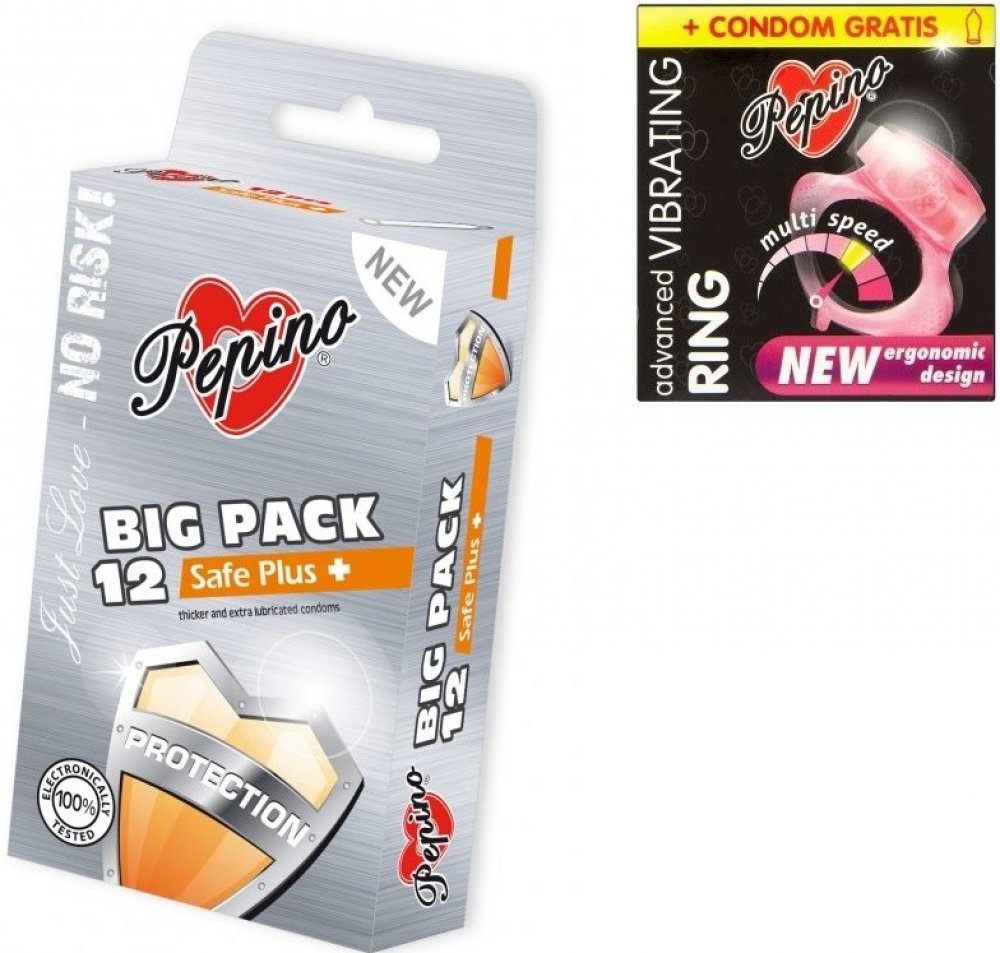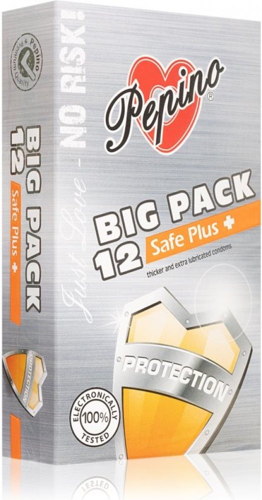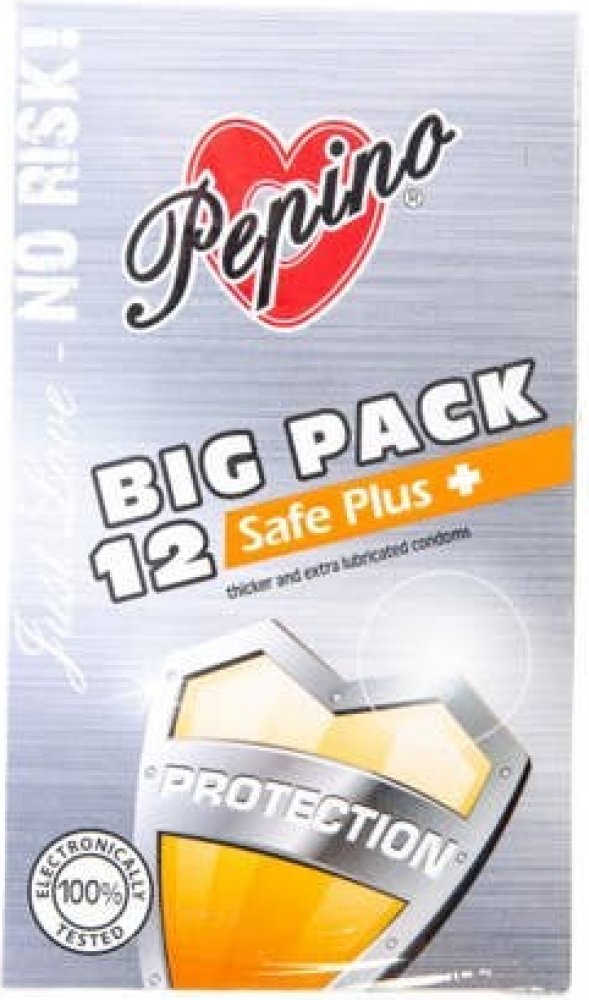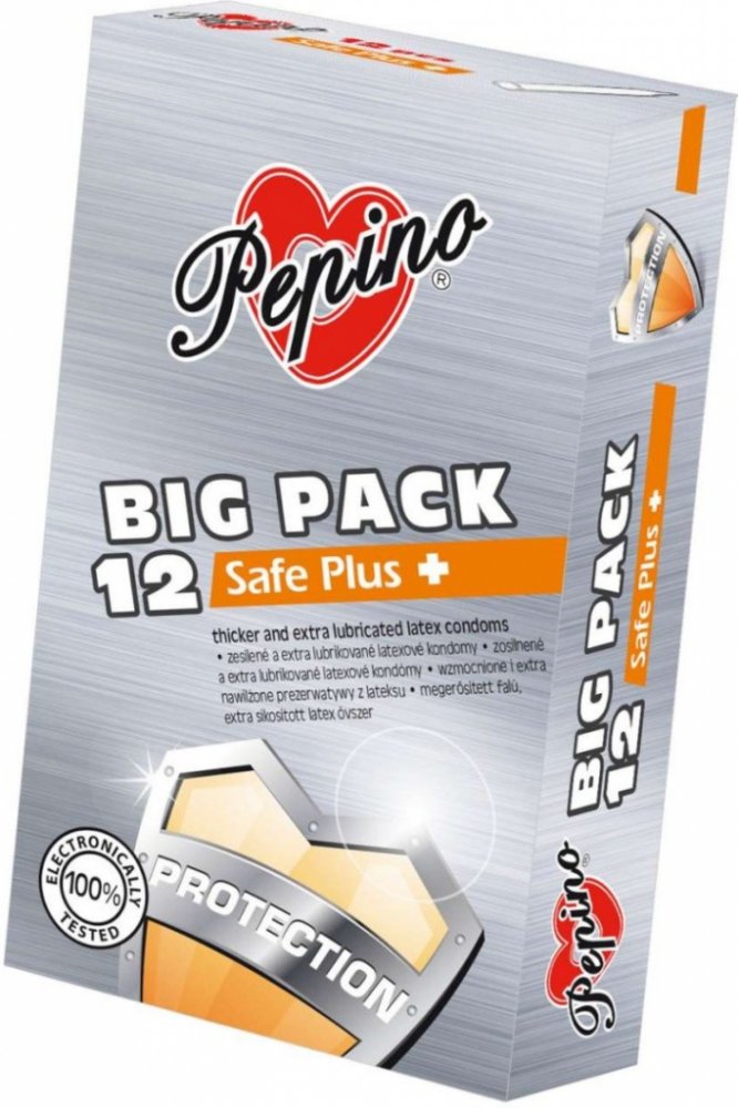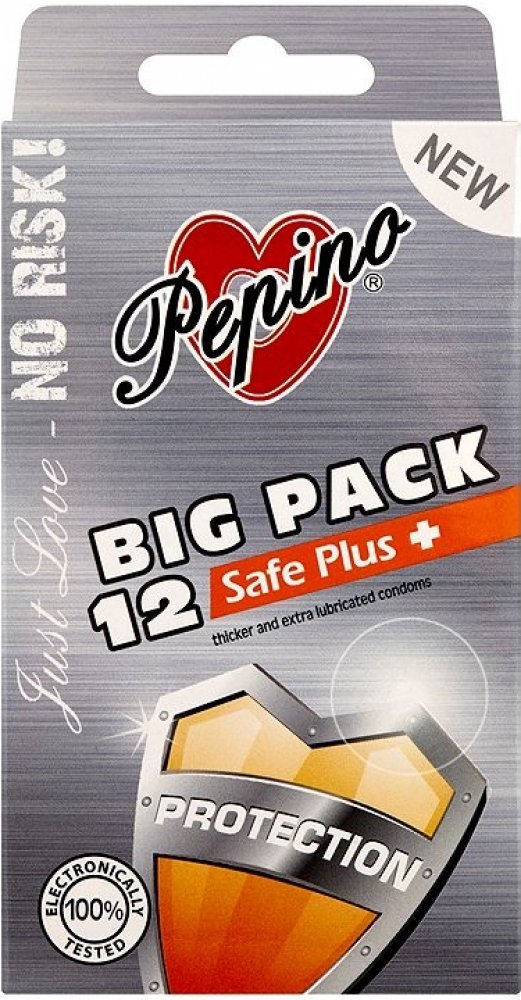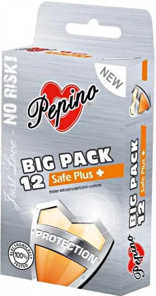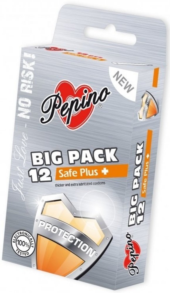 PEPINO BIG PACK 12 kusů v krabičce. Zesílené PEPINO kondomy z přírodního latexu extra lubrikované silikonovým olejem, s rezervoárem, klasický tvar, natural colour, hladký povrch, nominální šířka 53 mm. S jemnou vanilkovou vůní. 100% elektronicky testováno. Správné používání kondomů může pomoci snížit riziko otěhotnění, přenosu HIV / AIDS nebo jiných sexuálně přenosných infekcí. Kondomy Pepino jsou zdravotnické prostředky. Před použitím si pozorně přečtěte návod k použití uvnitř balení.
