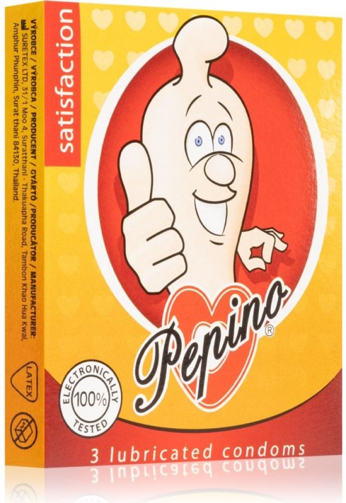 PEPINO kondomy z přírodního latexu s rezervoárem. Kondom nelze brát jako 100% ochranu proti otěhotnění a pohlavně přenosným chorobám. Šířka kondomu je 53 mm. Vlhčeno silikonovým olejem a elektronicky testováno. Skladujte na suchém a chladném místě. Pouze pro jedno použití. 3 ks v krabičce.