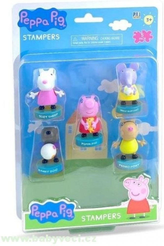 Figurky postav z animovaného seriálu Peppa Pig ve formě razítka! Postavy z oblíbeného dětského seriálu Peppa Pig přichází ve formě razítka! Krásně barevné postavičky jsou vytvořené přesně podle seriálové předlohy. Díky tomu si všichni milovníci těchto příběhů mohou oživit oblíbené scény nebo třeba vytvářet i vlastní příběhy a prožívat spoustu nových dobrodružství. Děti díky hře s těmito postavičkami procvičují svoji motoriku, podporují rozvoj své fantazie a cit pro umění tím, že vytvářejí své vlastní příběhy. Tyto figurky mají ve spodní části razítka, takže děti si mohou ozdobit školní práce, vytvořit nové obrázky a další.