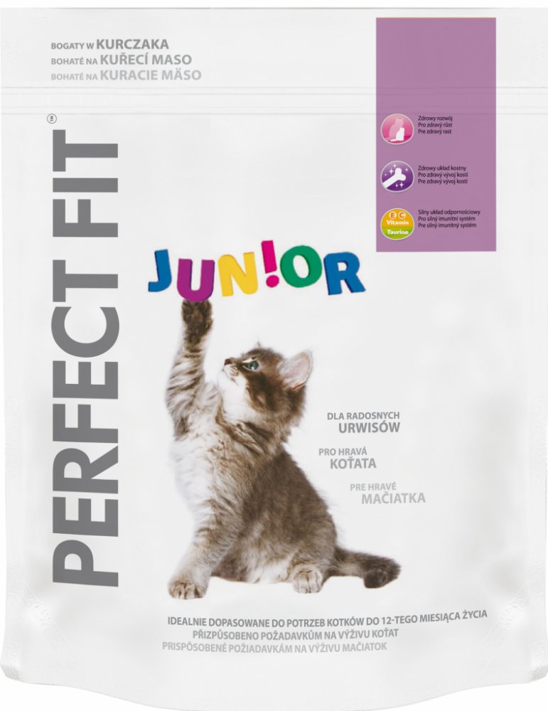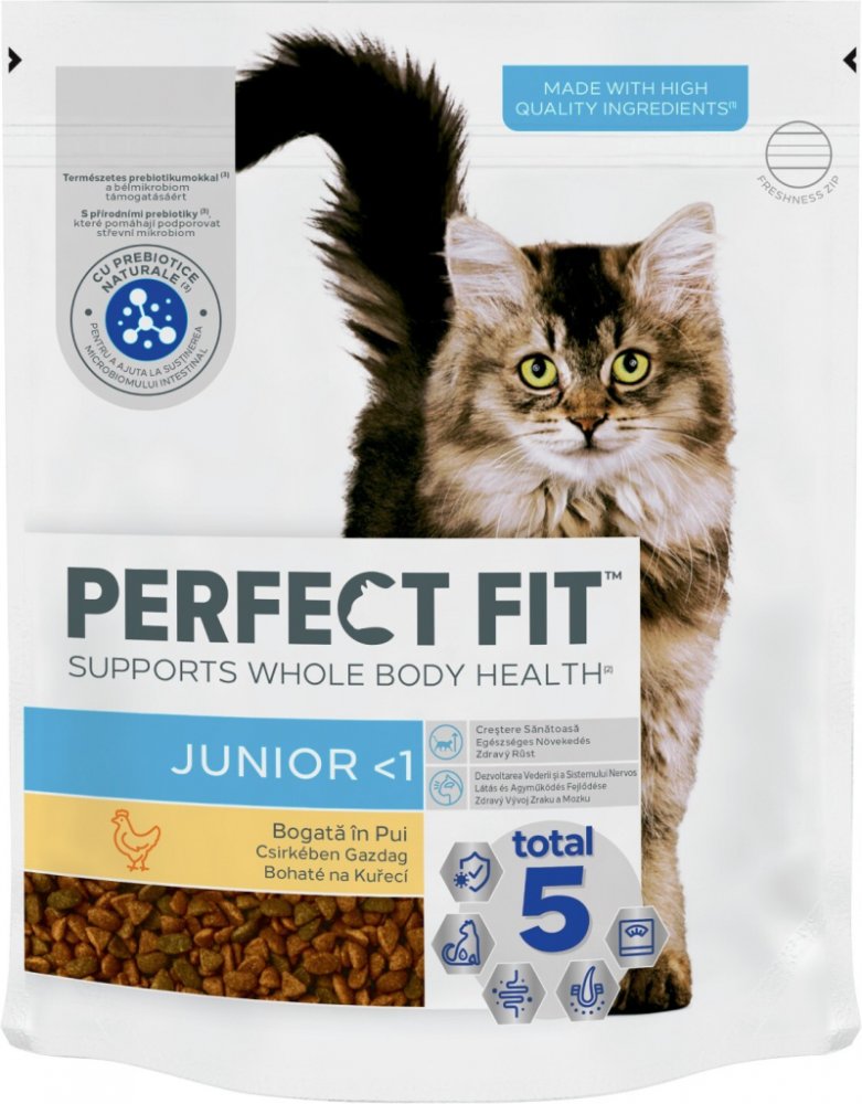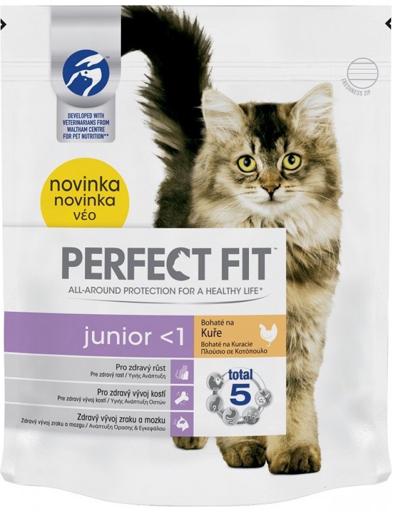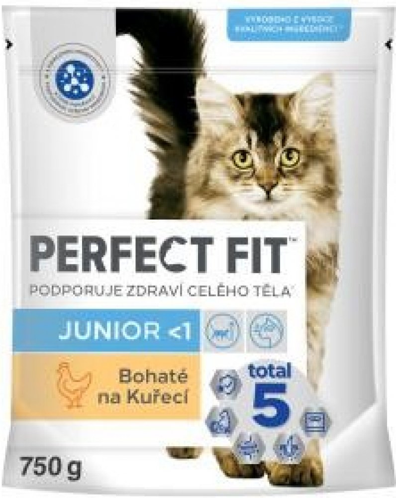 PERFECT FIT granule pro kočky Junior s kuřecím 750 g - PERFECT FIT granule pro koťata s kuřecím 750 g. - PERFECT FIT je vysoce kvalitní suchá kočičí výživa pro podporu mladistvého ducha vaší kočky během celého jejího života. Vyvinuto ve spolupráci s našimi veterináři a specialisty. Výrobek PERFECT FIT Total 5 z řady PERFECT FIT pozitivně přispívá ke zdraví koček v 5 hlavních oblastech, a to bez oh...