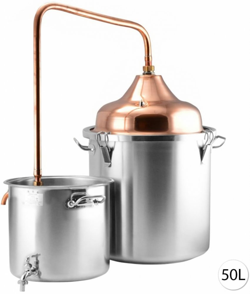 Domácí palírna Perfect Home 48040 obsahuje destilační nádobu o objemu 50L a chladící nádobu o objemu 25L. Nerezová ocel a měď. Bezpečnostní přetlakový ventil, těsnění. Pro plynový, elektrický a keramický ohřev.