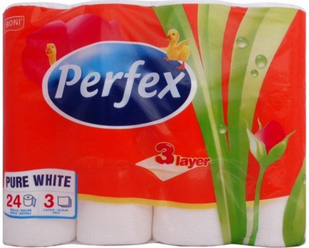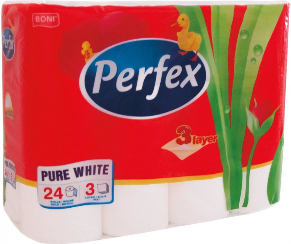 Třívrstvý sněhově bílý papír. Jedno balení obsahuje 24 rolí. Toaletní papír Perfex ve 3vrstvém provedení je bílý a dodává se s odnosným uchem. Balení obsahuje 24 rolí, ideální pro ubytovací zařízení jako praktická jednorázová role na jednu noc s návinem 10 m. Skvělá volba pro komfortní a hygienické použití. Extra bílý toaletní papír Perfex Plus výjimečnou vlastností toaletního papíru je jeho vysok...