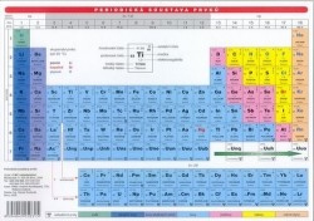Určená pro základní školy. Nezbytná pomůcka při výuce chemie. Díky nižšímu množství údajů v tabulce dosahuje větší přehlednosti a čitelnosti. Periodická soustava prvků představuje současný počet objevených prvků uspořádaný do známé tabulky podle skupin a period. U každého prvku je uvedena jeho značka, oxidační číslo, hmotnostní číslo, protonové číslo, český a latinský název. Barevně označené je sk...