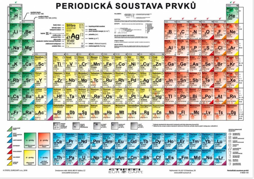 Didaktická pomůcka obsahuje v přehledné formě množství informací o prvcích. Jsou v ní uvedeny informace, které vyžadují školní normy a didaktické potřeby, ale najdete na ní i rozšiřující údaje. Informace, které jsou nad rámec běžného učiva chemie a fyziky, jsou velkým přínosem, protože jejich využití obohacuje výuku chemie i fyziky a zkracuje čas přípravy učitele i studentů.