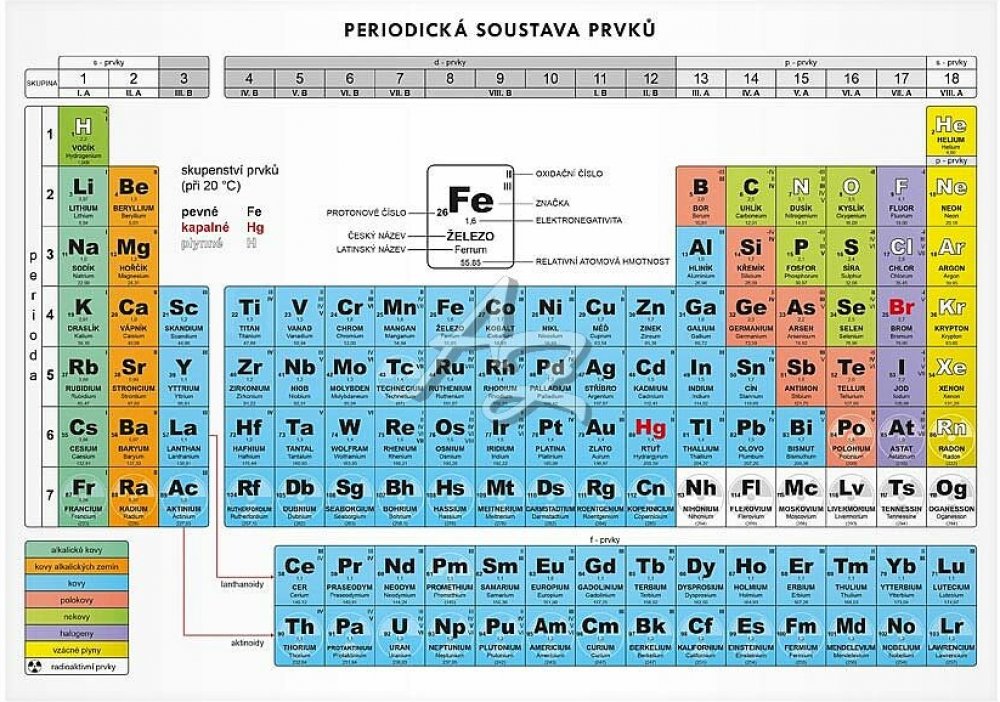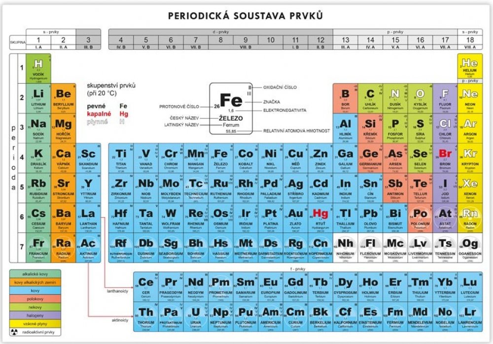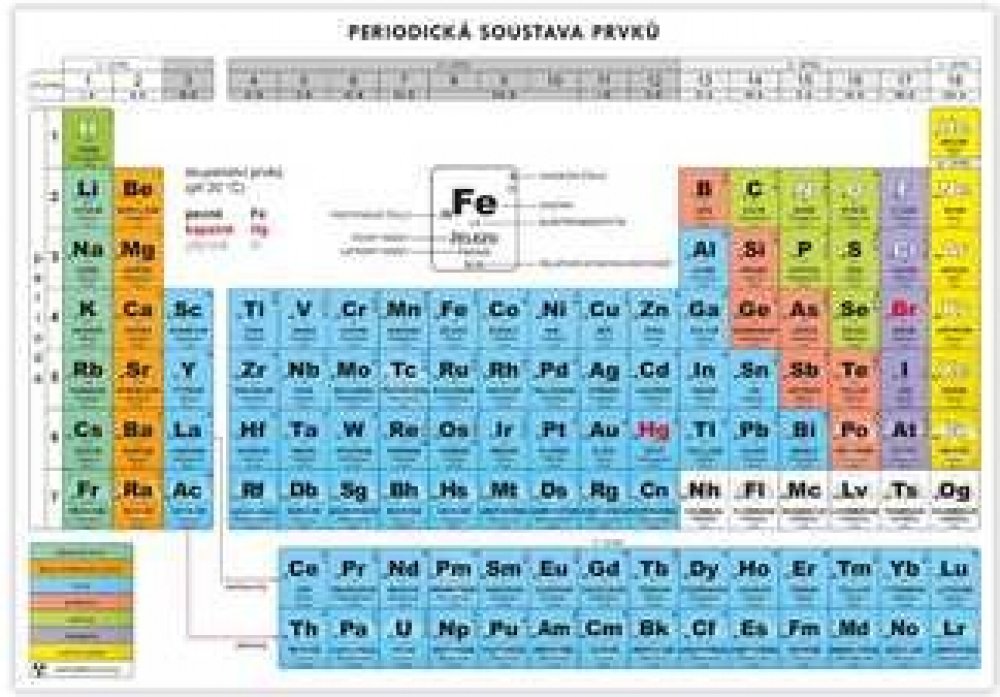 Periodická soustava prvků Periodická tabulka prvků velikosti A4 - výuková tabulka - vhodný doplněk k výuce chemie na základních a středních školách.