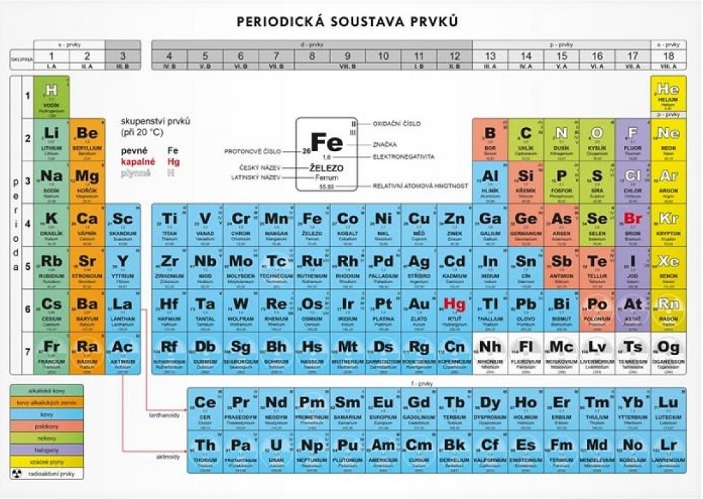 Periodická soustava prvků obsahuje: