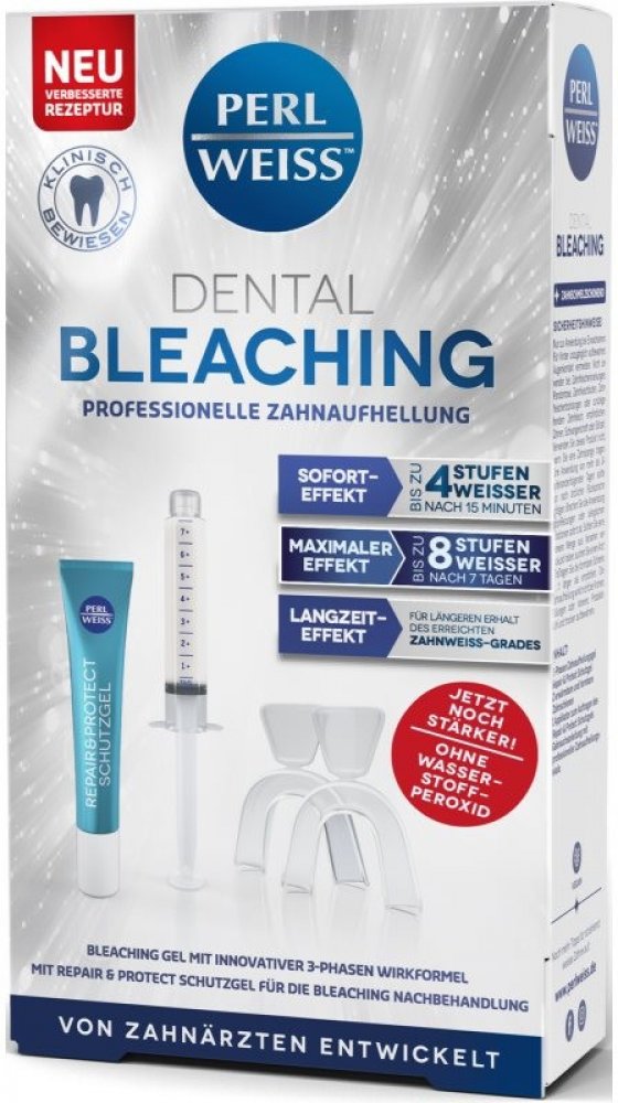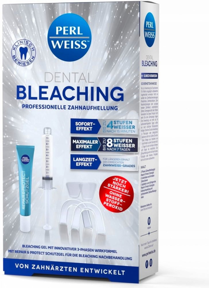 Objevte profesionální bělicí systém Dental Bleaching 4.0 od PERL WEISS pro snadné použití doma. Tento inovativní produkt vám umožní dosáhnout až o 4 úrovně bělejších zubů již po 15 minutách a až o 8 úrovní bělejších zubů po 7 dnech používání. Bělič zubů PERL WEISS bez peroxidu je bezpečný a šetrný k vašim zubům. Součástí balení je ochranný gel Repair & Protect, který remineralizuje zubní sklovinu ...