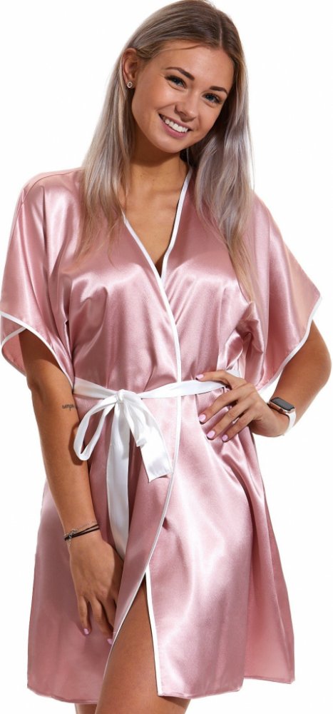 Perlově růžový saténový župan pro ženy 1E8462 růžová