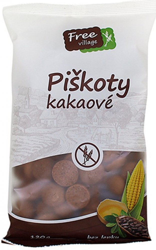 Bezlepkové kakaové piškoty jsou piškoty zhotovené z kukuřičné a rýžové mouky a kakaového prášku se sníženým obsahem tuku. Kukuřice je přirozeně bezlepkovou a nutričně velmi bohatou potravinou, má vysoký obsah vitamínů skupiny B a obsahuje rovněž minerální látky jako je železo, hořčík, zinek, mangan a selen.