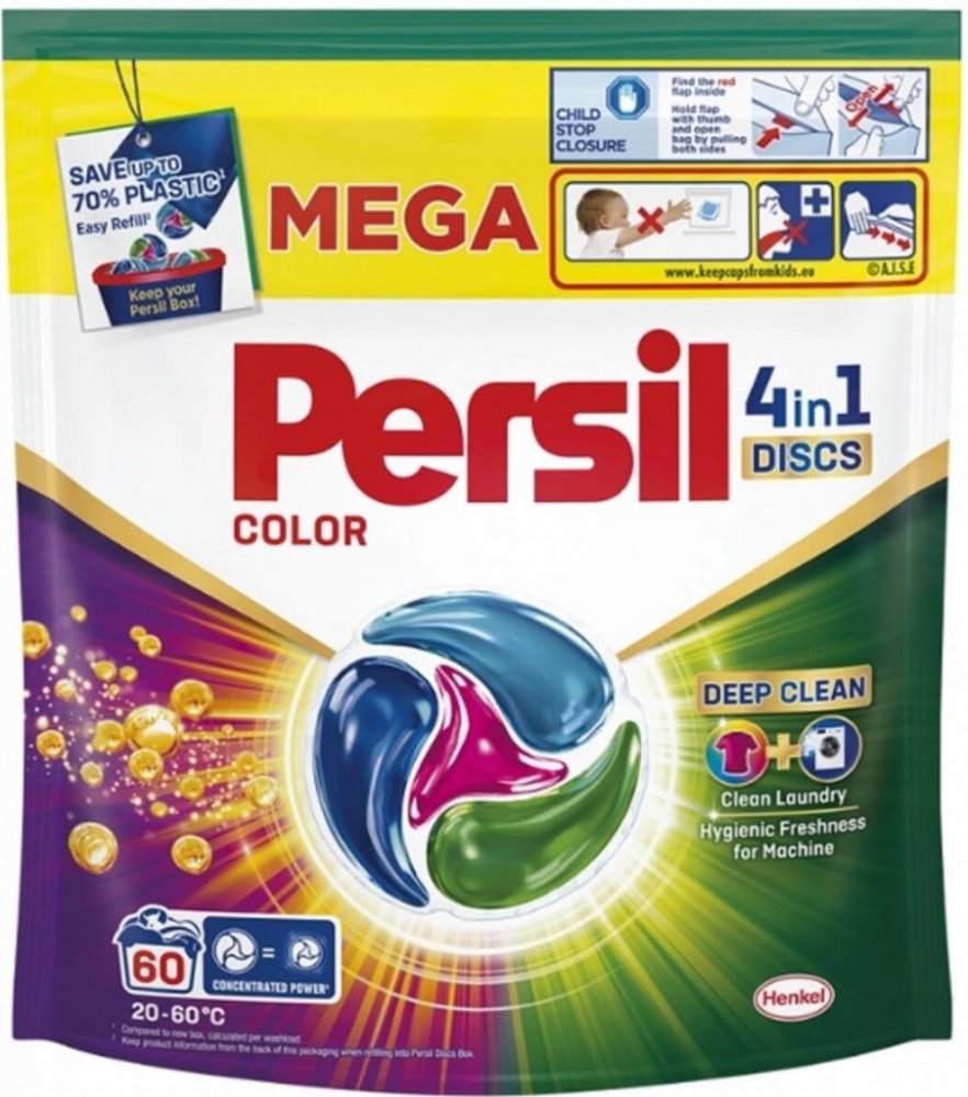 Objevte inovaci v praní barevného prádla s Persil 4 in 1 Discs Color. Tyto moderní čtyřkomorové kapsle kombinují čtyři klíčové účinky v jedné praktické kapsli, která zajišťuje perfektní výsledky při každém praní.
