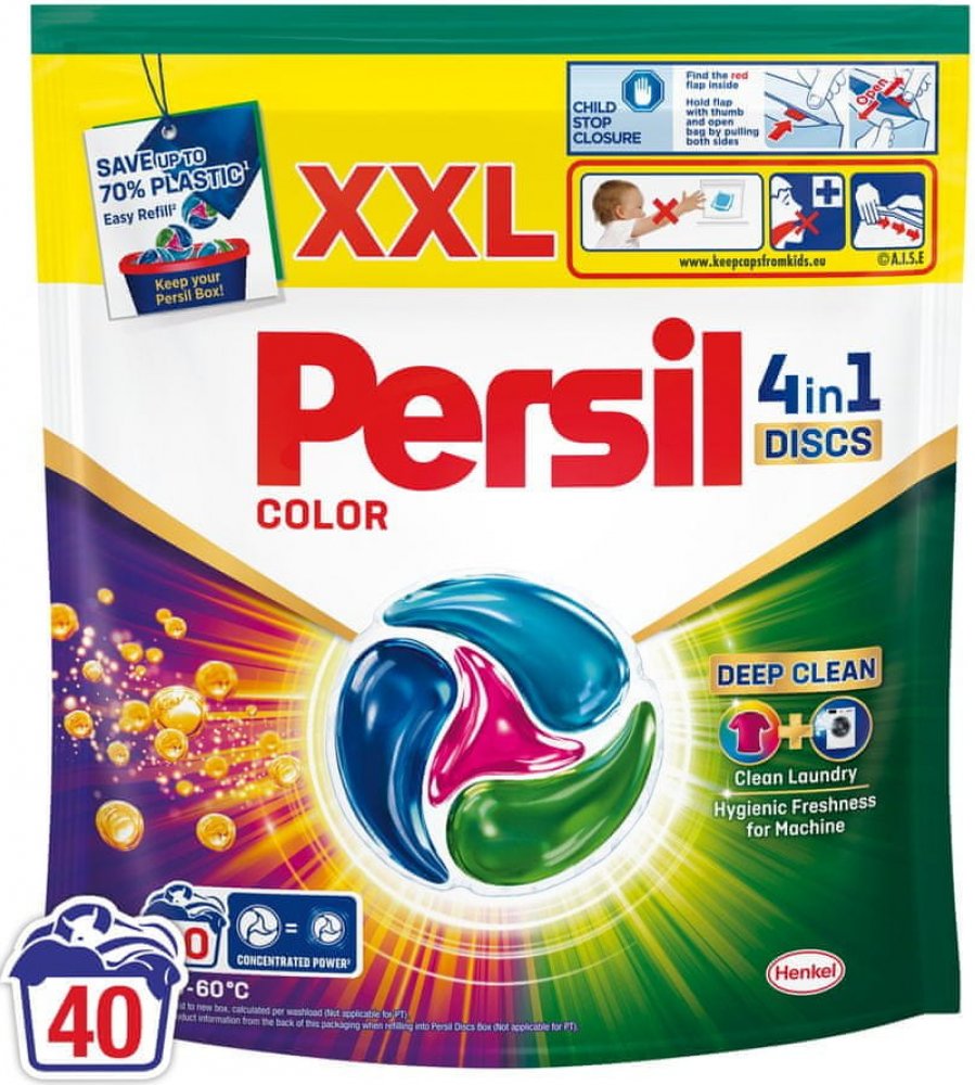 Klíčové přednosti kapslí na praní PERSIL Discs Color 40 ks