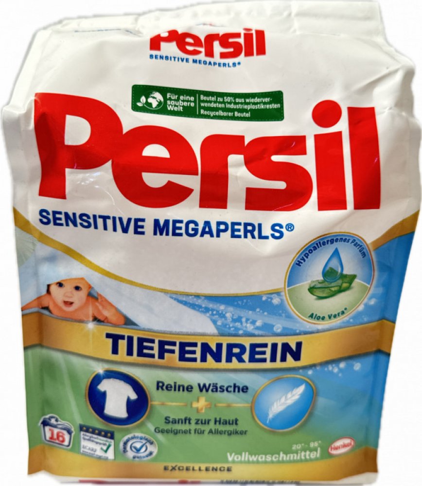 obsahuje přírodní složky, jako je aloe vera a přírodní mýdlo respektuje mikrobiom pokožky vyrobeno s hypoalergenním parfémem Dermatologicky testováno* a certifikováno ECARF** Varování: Silně dráždí oči, skladujte mimo dosah dětí. Při zasažení očí, okamžitě omyjte velkým množstvím vody. Při požití nevyvolávejte zvracení, dítěti hrozí nebezpečí vdechnutí vytvořené pěny, okamžitě vyhledejte lékařskou pomoc a ukažte tento obal nebo označení. Složení: 15 - 30% bělidla na bázi kyslíku, 5 - 15% aniontové povrchově aktivní látky, zeolity, Jedinečné složení: Persil s jedinečným složením, kt