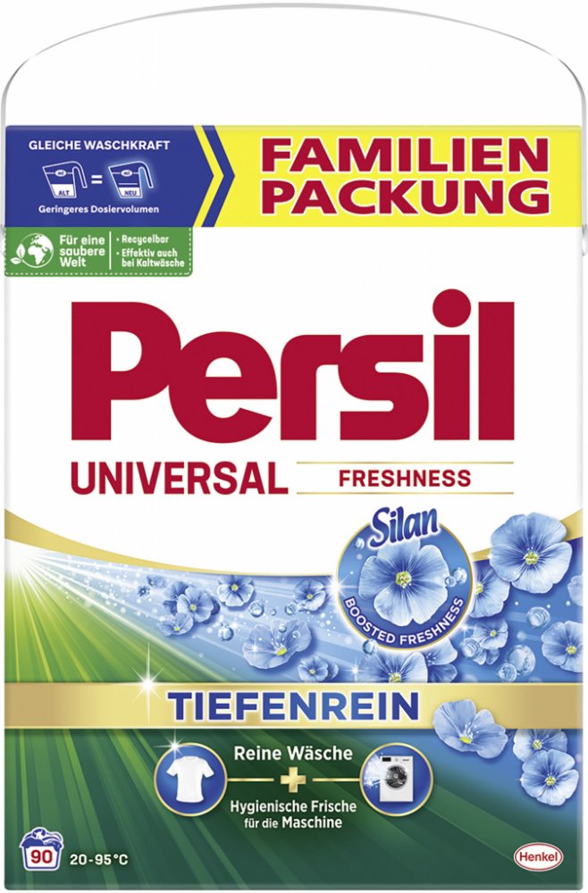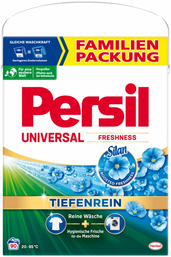 S Persil pracím práškem Freshness by Silan získáte efektivní, ekonomické a šetrné řešení pro praní vašeho prádla. Užijte si dokonalou čistotu, dlouhotrvající svěžest a zářivé barvy, a to i při nižších teplotách. 4,95 kg balení vám zajistí až 90 praní, takže můžete mít vaše prádlo čisté a svěží po dlouhou dobu.