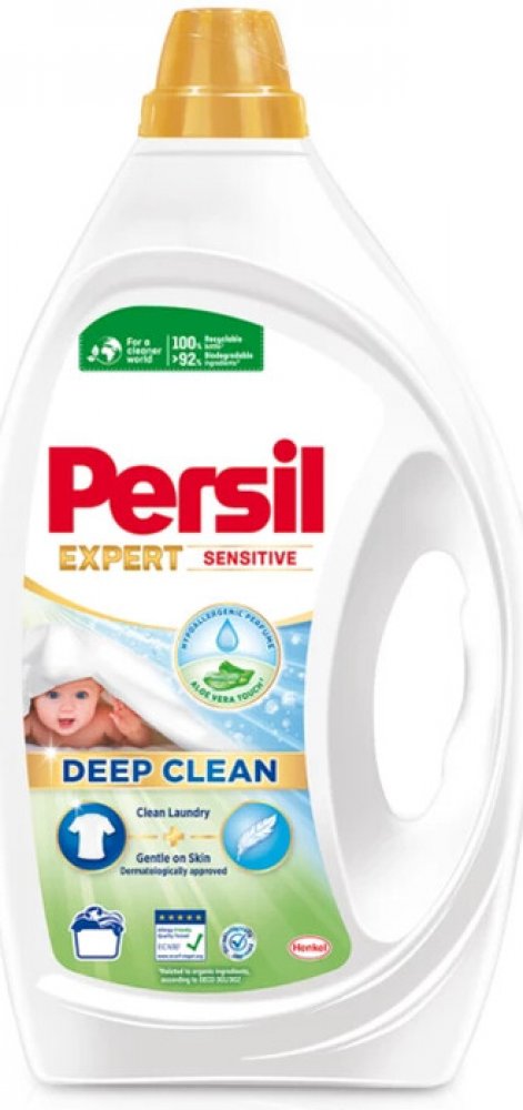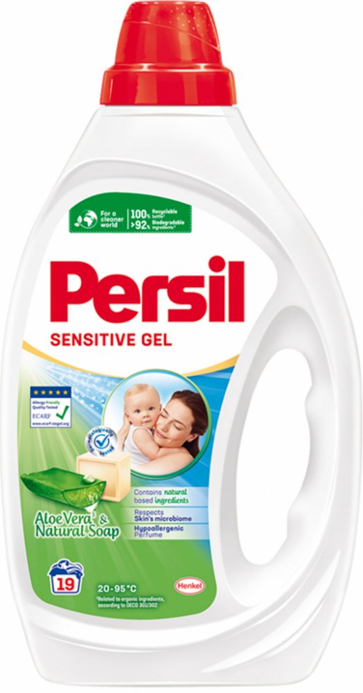 Persil gel Sensitive byl vyvinut speciálně pro citlivou pokožku. Jemný prací prostředek zajistí nyní víc než jen efektivní odstranění skvrn. Neobsahuje žádná barviva, aby se minimalizovalo riziko podráždění, což z něj činí ideální prací prostředek na dětské nebo kojenecké oblečení. Prací prostředek zajišťuje čistotu pro bílé nebo barevné prádlo a zároveň dodává vašemu oblečení jemnou vůni. Naše složení bylo certifikováno institutem ECARF, aby usnadnilo každodenní život našich spotřebitelů s alergiemi a citlivou pokožkou.