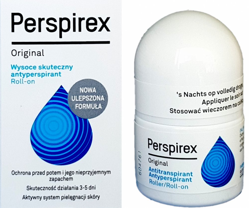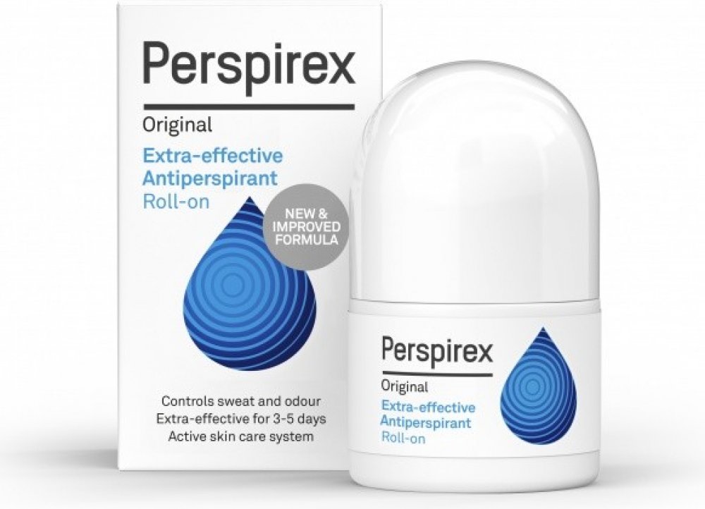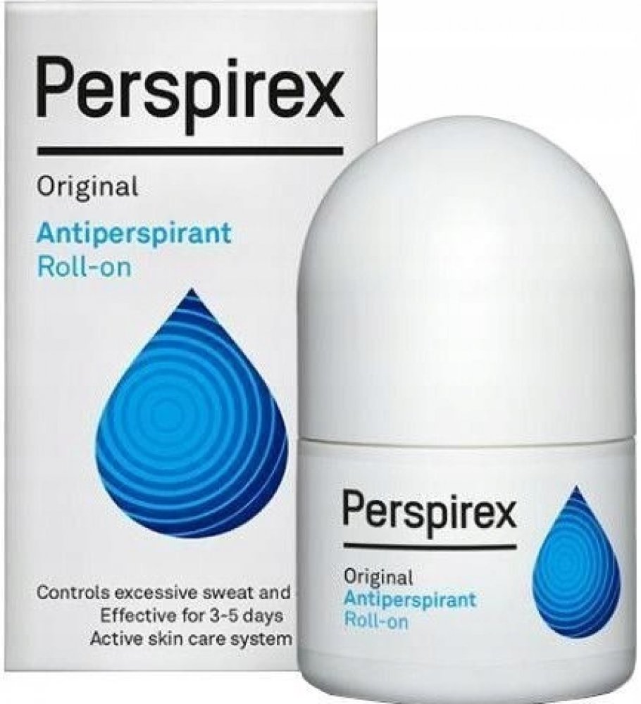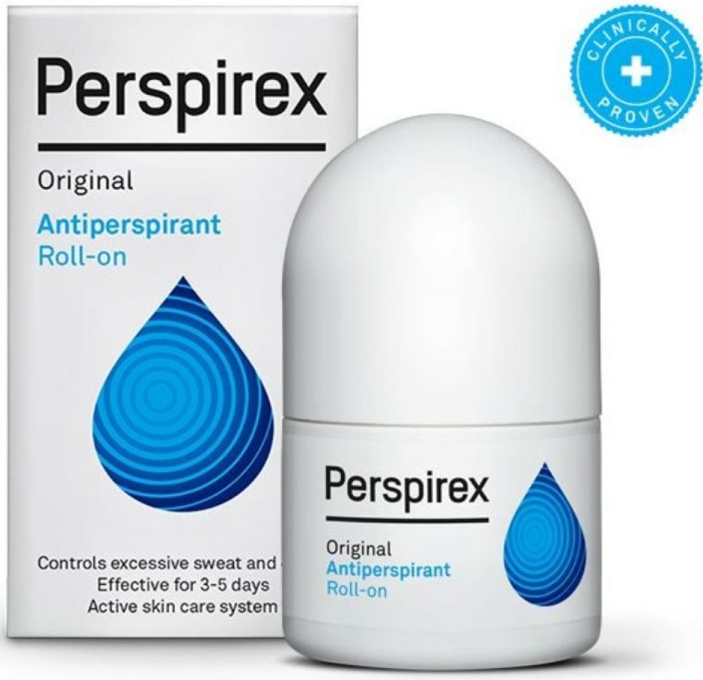 Antiperspirant Perspirex Original, roll-on, používajte vždy večer pred spaním, keď sú potné žľazy menej aktívne.