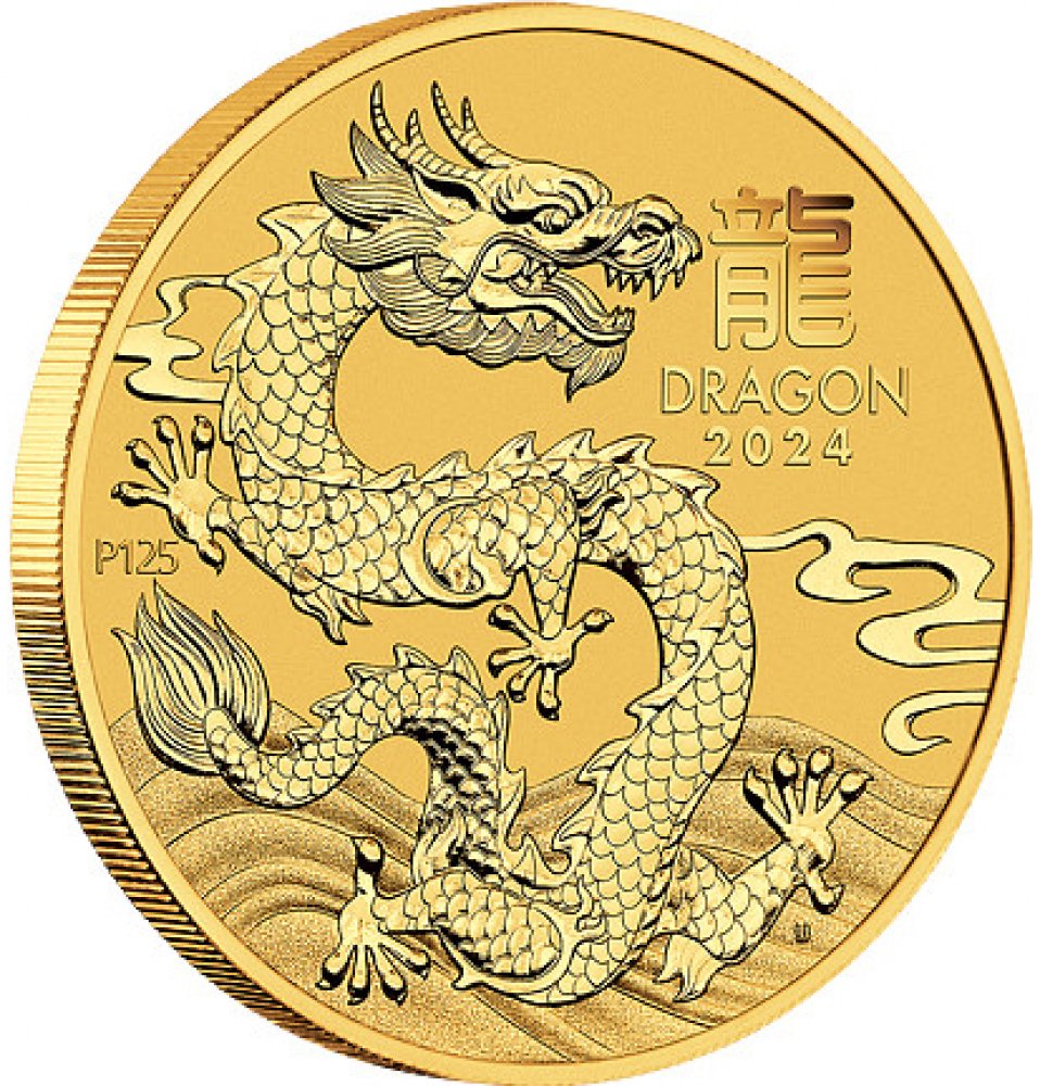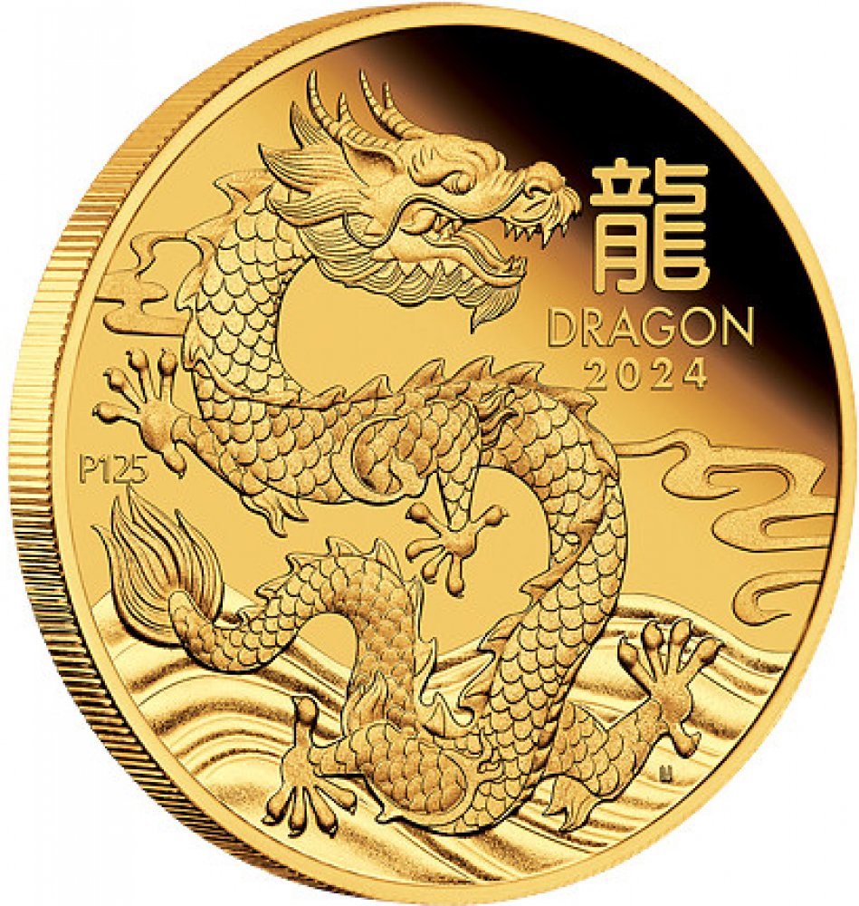 Zlatá mince Year of the Dragon 2024 (Rok draka) 1/10 Oz je pátou mincí Lunární série III.