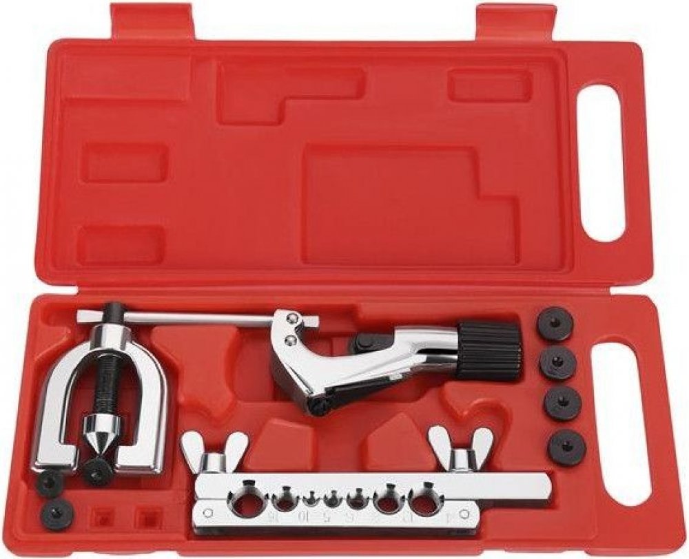 Díky 10dílnému složení je sada vhodná pro různé průměry trubek. Všechny komponenty jsou vyrobeny z tvrzené oceli, což zajišťuje vysokou odolnost a dlouhou životnost i při častém použití. Přiložený pevný kufřík udrží jednotlivé díly přehledně uspořádané a vždy připravené k práci.