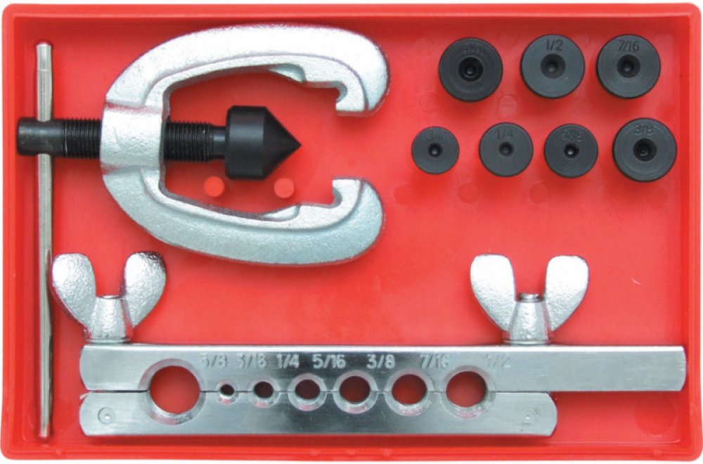 Určena na dvojité rozválcování konců trubek z měkké oceli, hliníku a mědi do tloušťky stěny 0.040” a výrobě rozválcovaných trubek na 45° dle SAE. Otočná hlavice z tepelně zpracované legované oceli je přesně obroušena a pochromována ke snížení tření. Tepelně zpracovaný zápustkově kovaný třmen. Pro snadnou identifikaci je každý adaptér označen vyraženým symbolem. Leštěný povrch kontrastuje s černým oxidem. Může také sloužit k jednoduchému rozválcování. Velikosti: 3/16”, 1/4”, 5/16”, 3/8”, 7/16”, 1/2”, a 5/8”