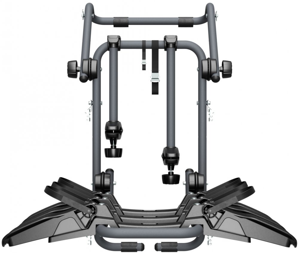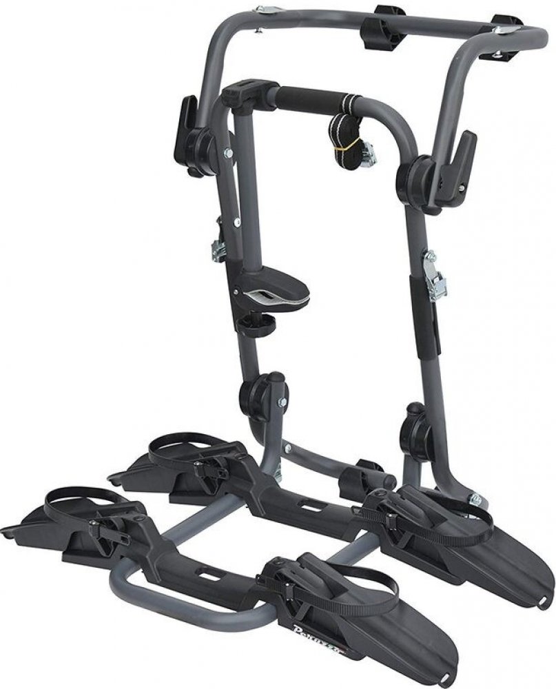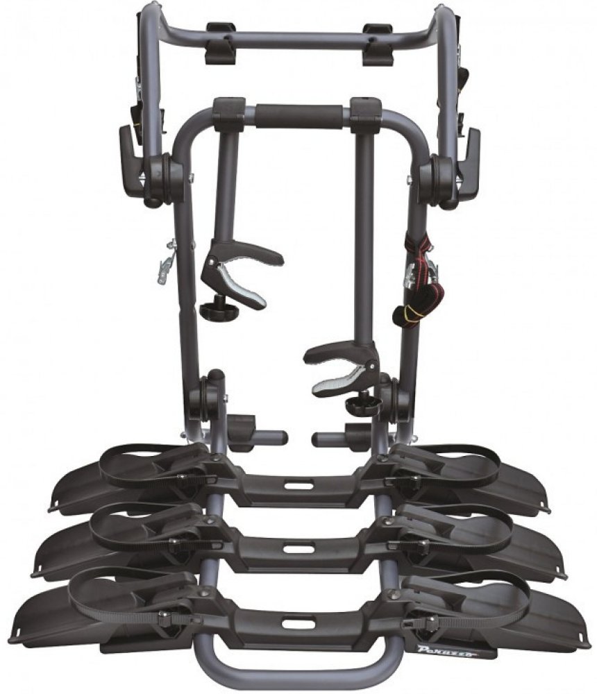 Nosič pro 3 jízdní kola, k upevnění na 5. dveře automobilu. Upevňuje se pomocí pásků a je kompatibilní s většinou vozů - i sedany. Možnost složení. • (držáky na 2. a 3. kolo jsou součástí nosiče)