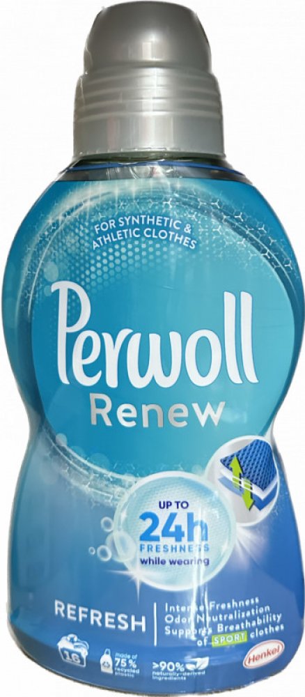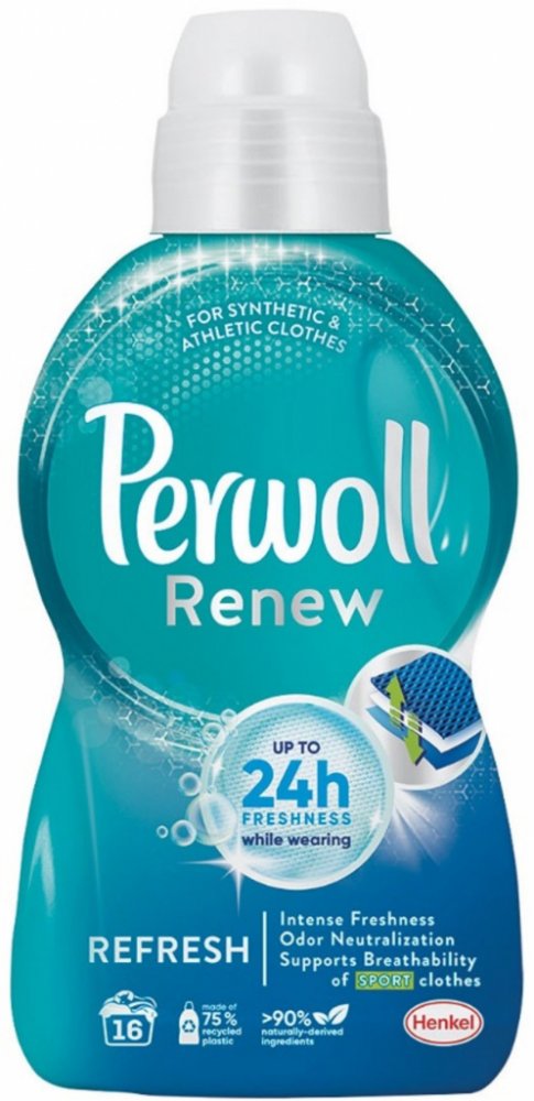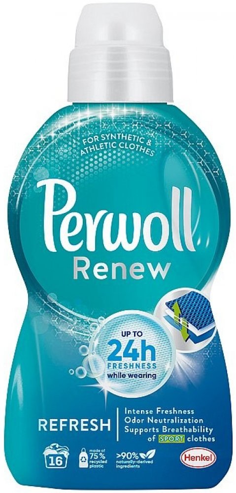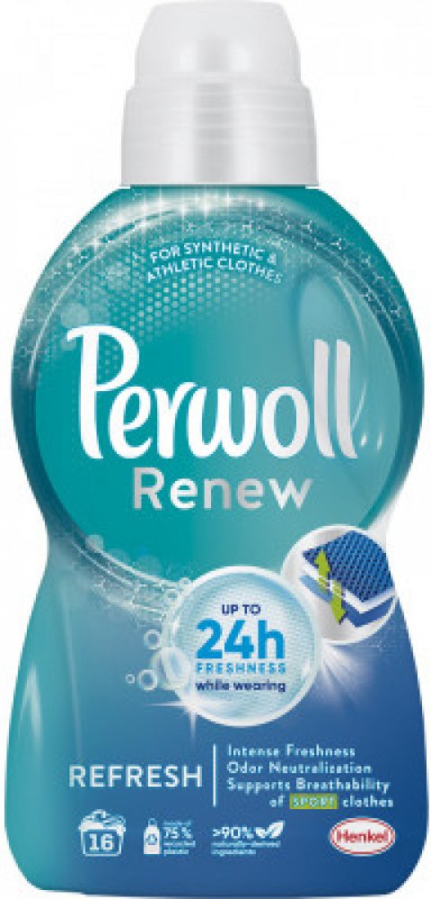Speciální prací gel Perwoll Renew Refresh Sport pro neutralizaci zápachu a intenzivní svěžest. Prací prostředek Perwoll Renew nabízí intenzivní svěžest a je speciálně vyvinut pro uchování tvaru oblečení ze syntetických vláken. Obsahuje složku Deo-tech, která neutralizuje zápach a zaručuje až 24hodinovou svěžest.