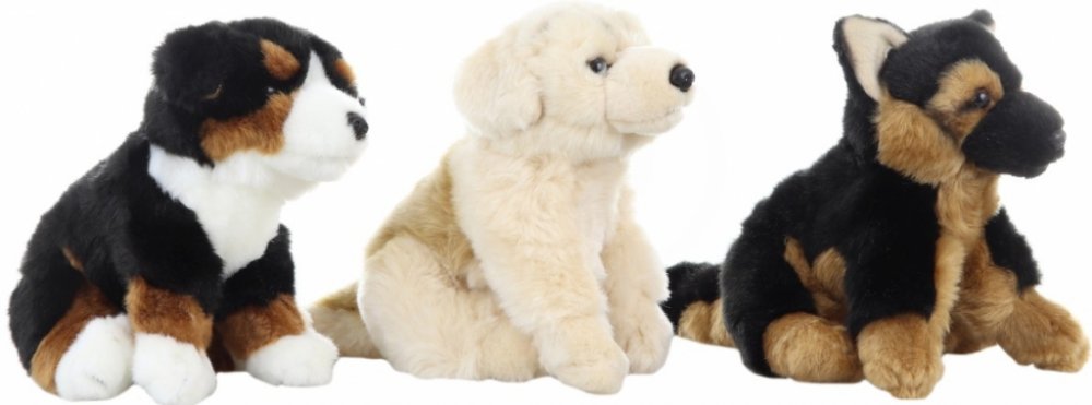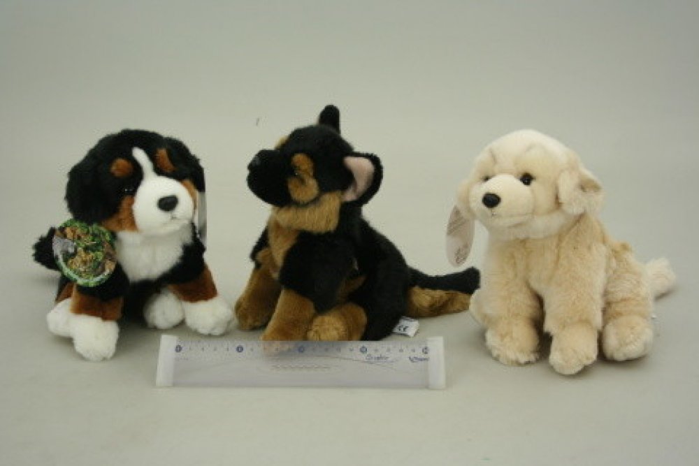 Plyšový pes o rozměrech cca 26 x 20 x 13,5 cm. Varianty zboží: 1 Bernský salašnický 2 Larbrador 3 Německý ovčák Cena je za 1 kus. Materiál: plyš Věk 3+