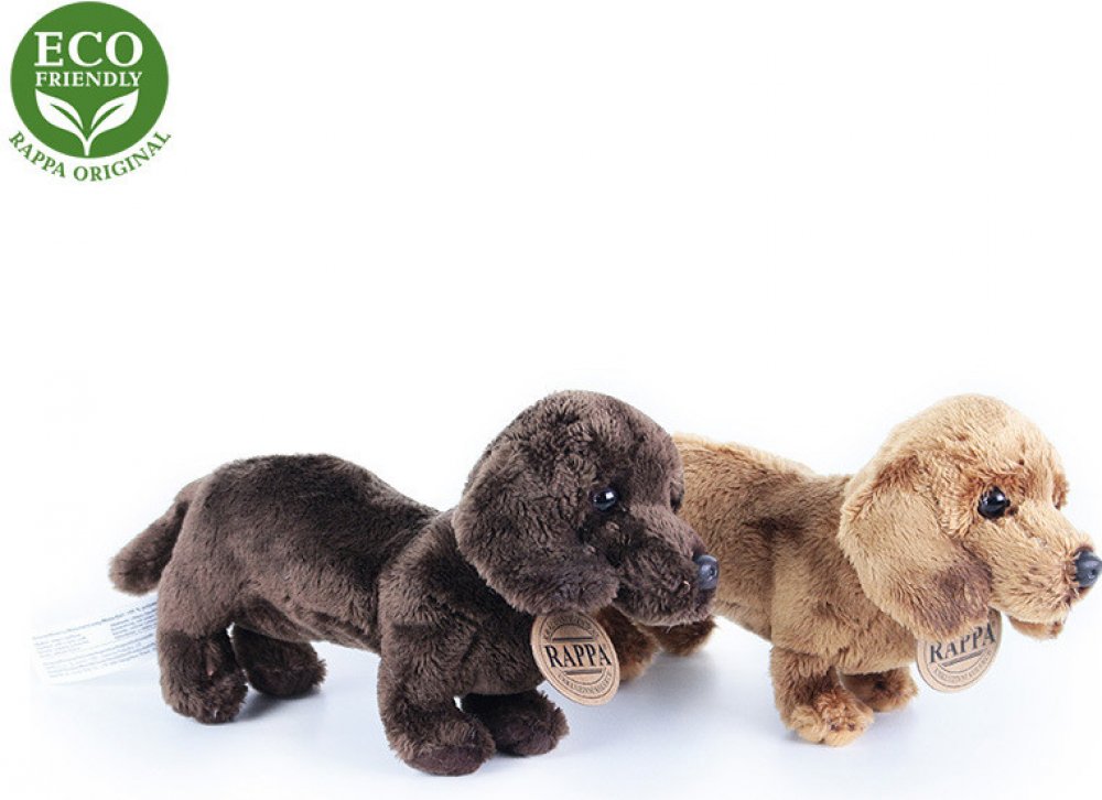 Rappa Plyšový pes jezevčík stojící 19 cm ECO-FRIENDLY 1ks Heboučký plyšový pes jezevčík o velikosti 19 cm ve dvou barvách. Jezevčík je vyroben z kvalitní plyše Co to vlastně ECO-FRIENDLY znamená? Výplň plyšové hračky je vyrobena z recyklovaných PET lahví. Tento materiál je zcela bezpečný, na omak nerozeznatelný od standartní výplně a plně atestovaný pro bezpečnost i těch nejmenších. Rozhodli jsme se jít zelenou cestou co nejméně zatěžující životní prostředí- cestou ECO-FRIENDLY.