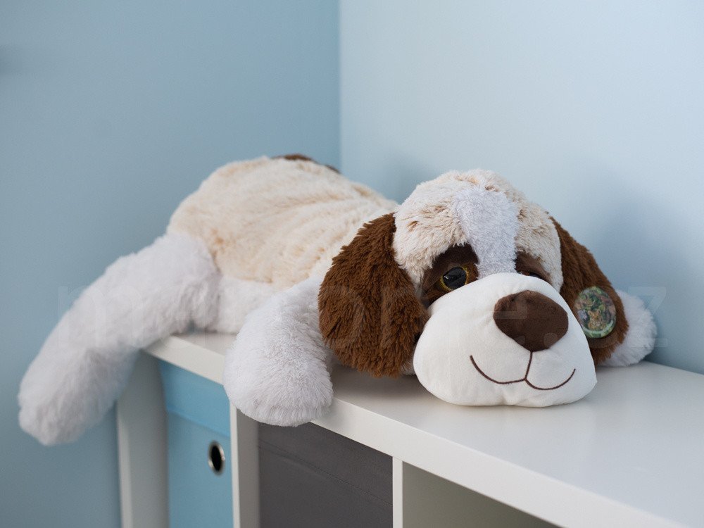 Úžasný plyšový pejsek o velikosti 105 x 55 cm potěší každého milovníka plyšáků. Ležící pes je příjemný na dotek a na mazlení.