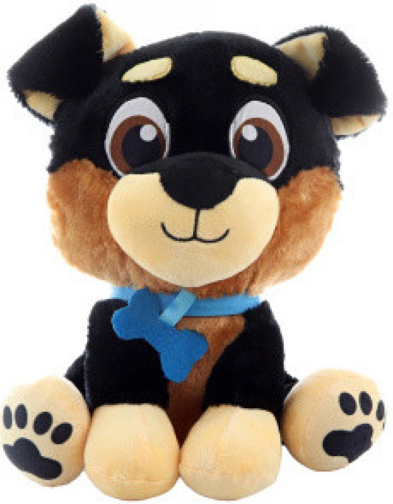 Plyšové zvířátko veselý sedící pes flíček, s kostičkou na krku, velké výrazné oči, plyšák pejsek o velikosti 25cm, psík pro ty nejmenší milovníky plyšových zvířátek.